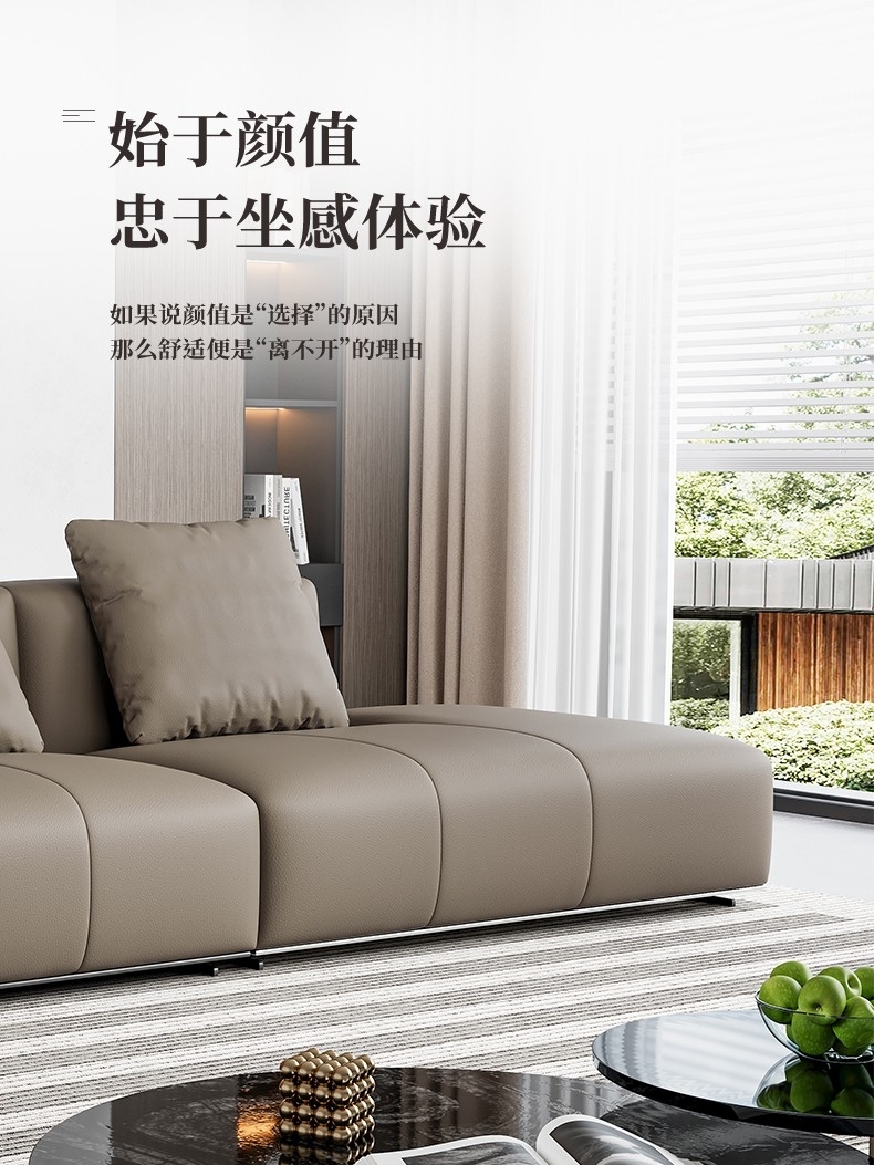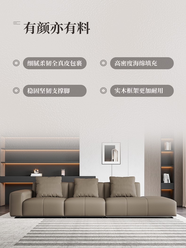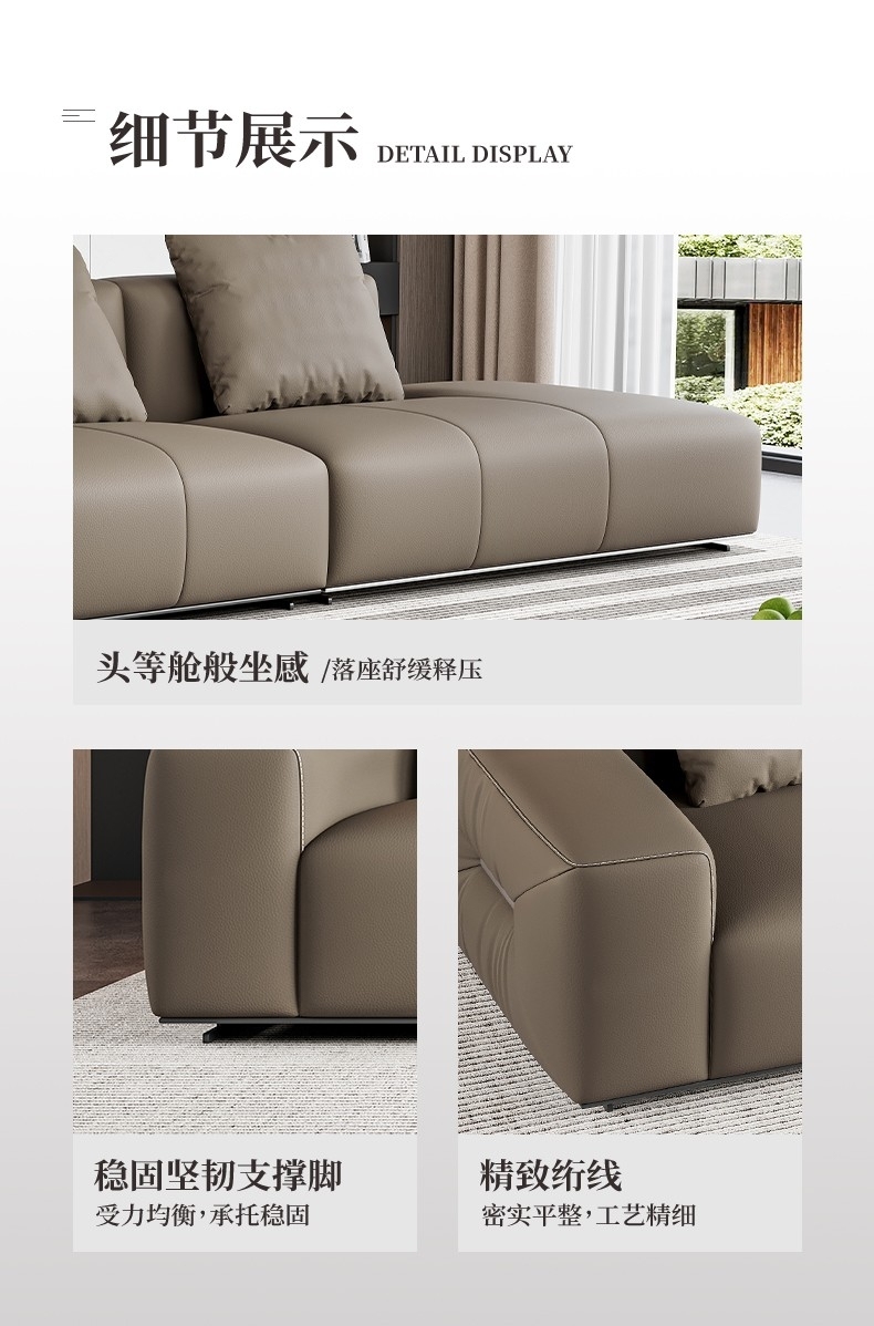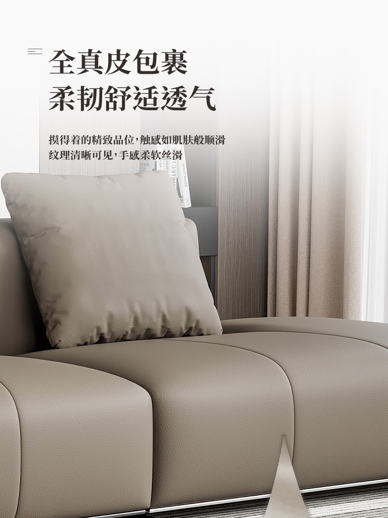 意式客厅软包沙发 极简风1.2mm全头层黄牛皮轻压摔纹沙发