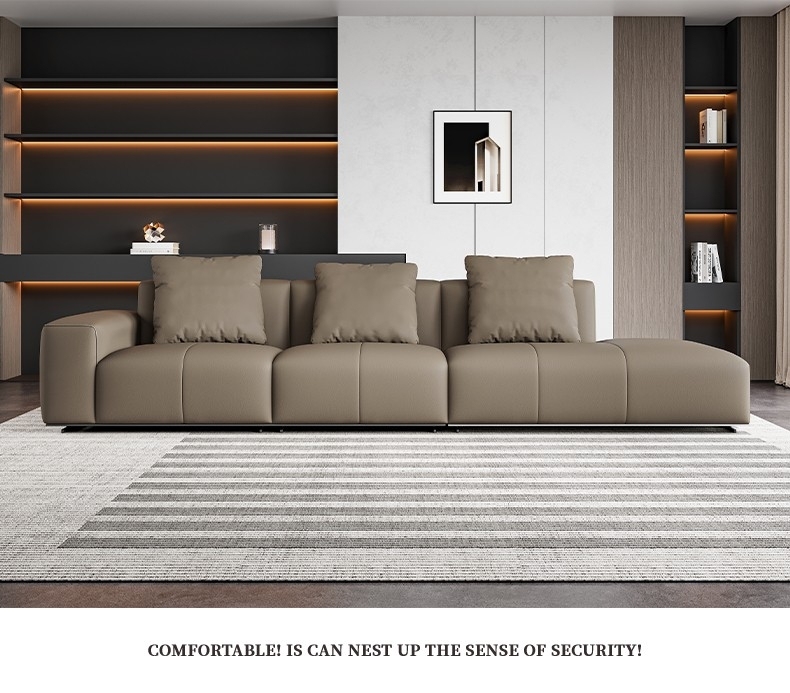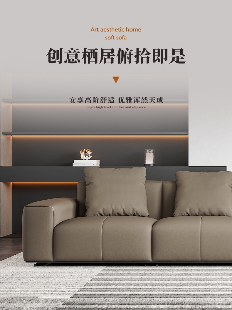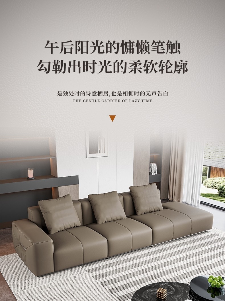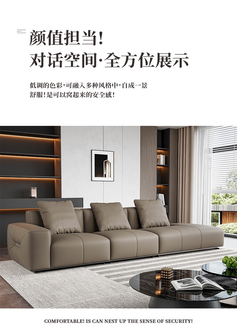 意式客厅软包沙发 极简风1.2mm全头层黄牛皮轻压摔纹沙发