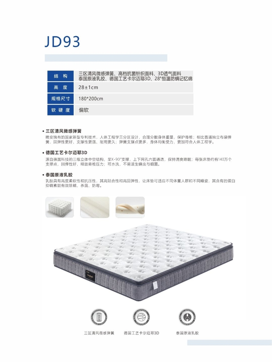 填充物:泰国原液2CM乳胶、德国工艺卡尔迈耶3D、28°恒温防螨记忆绵