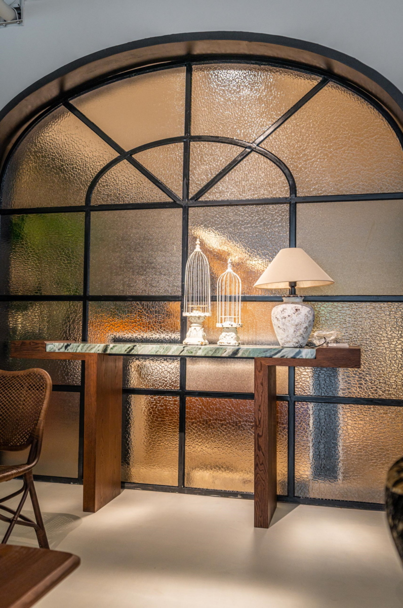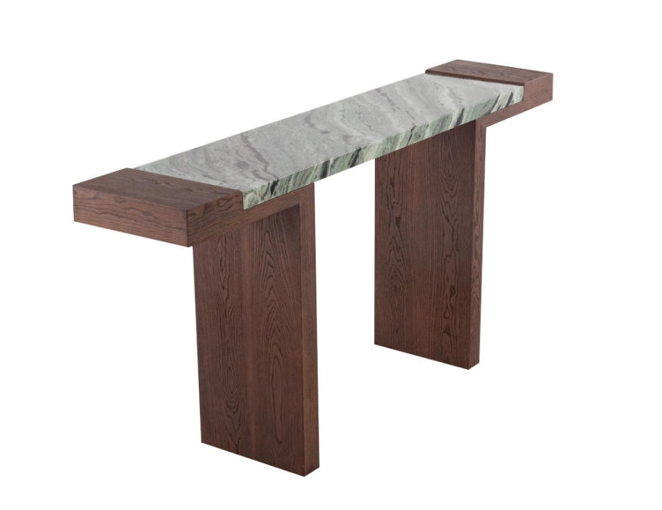 与在系列 中古风胡桃木色入户置物玄关几香格里拉翡翠天然大理石台面玄关桌