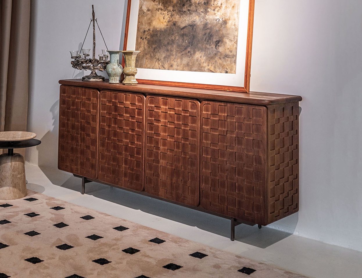 与在系列 简约中古风胡桃木色餐厅收纳餐边柜