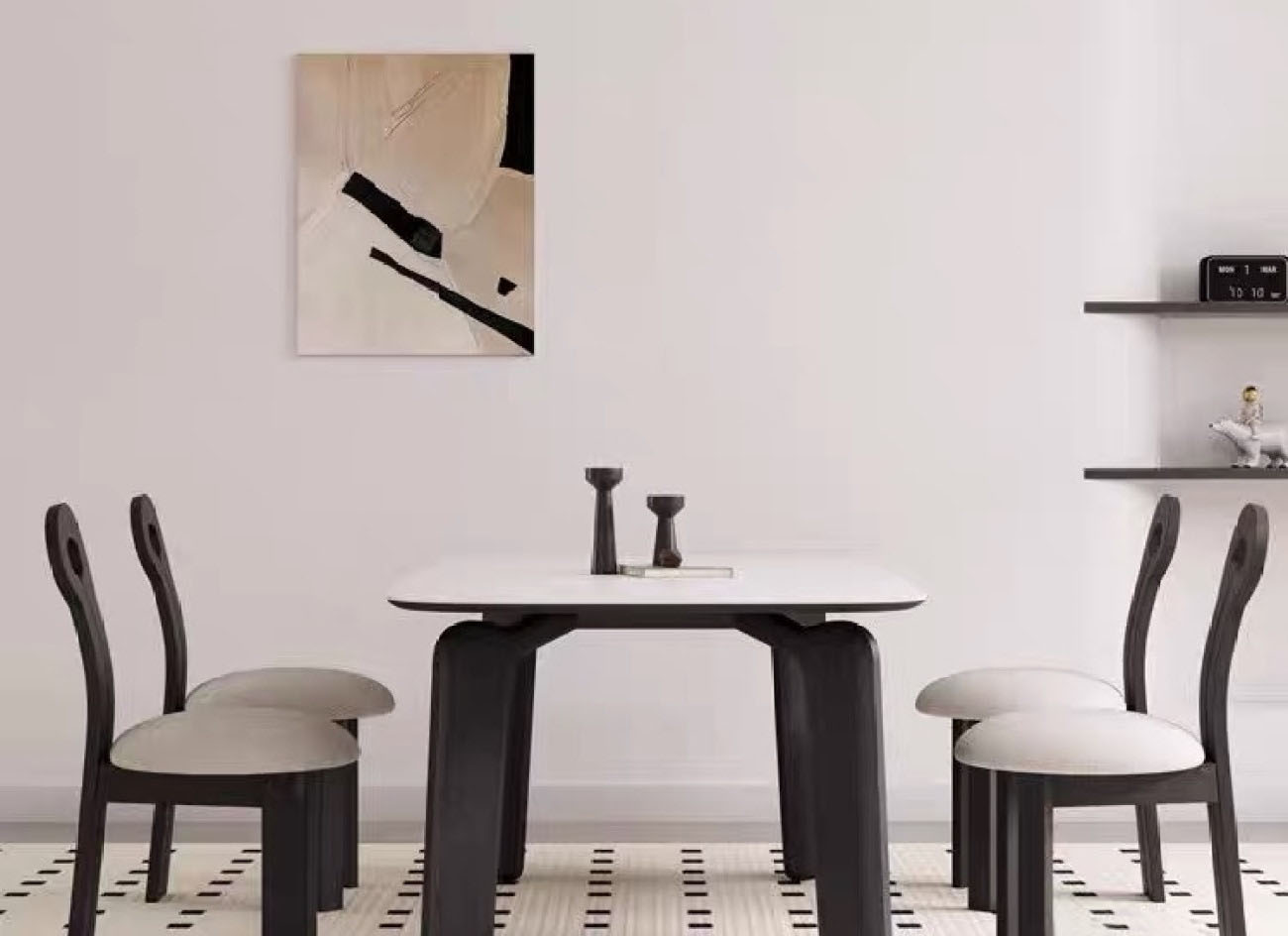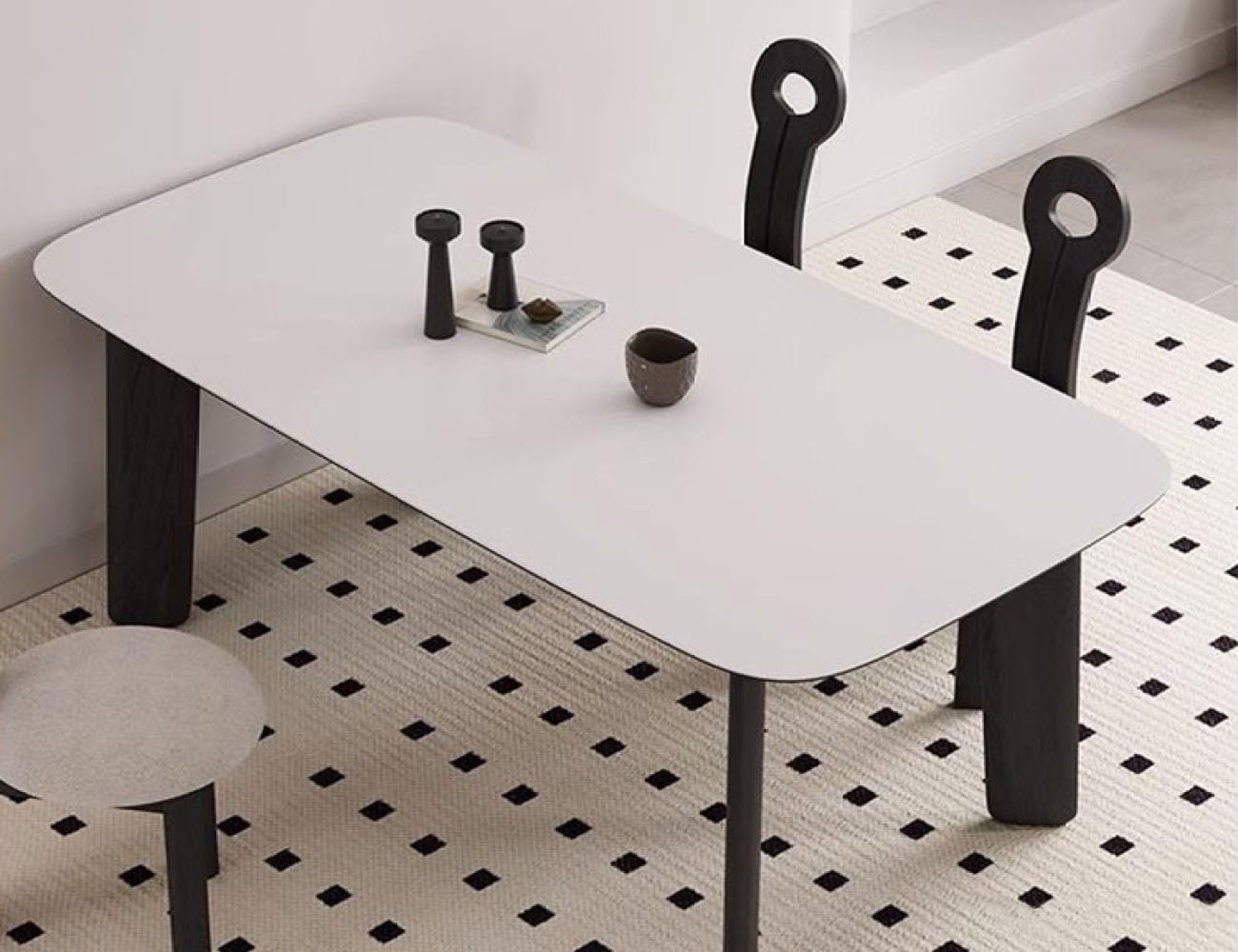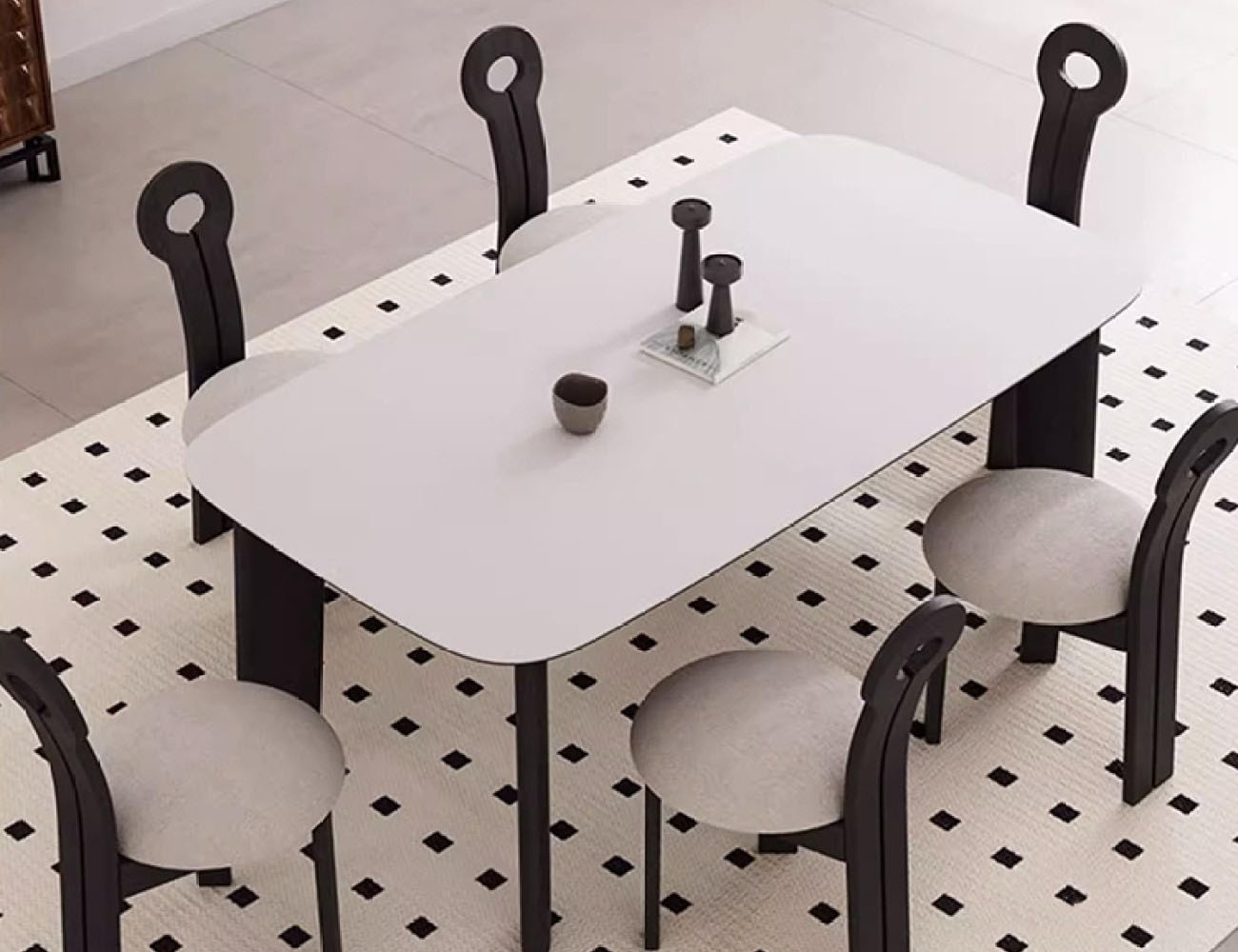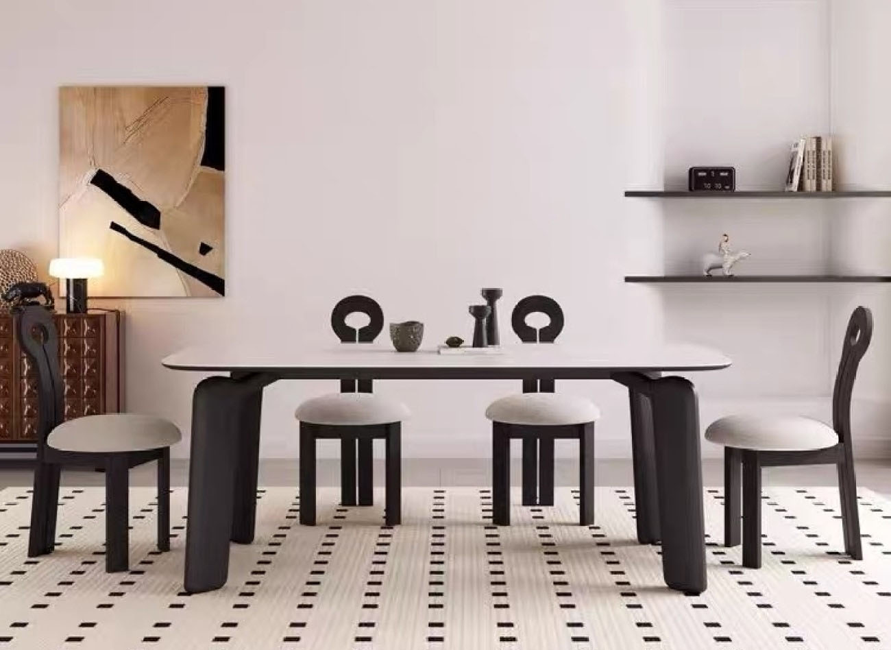 中古风哑光岩板餐桌 家用餐厅长方形餐桌