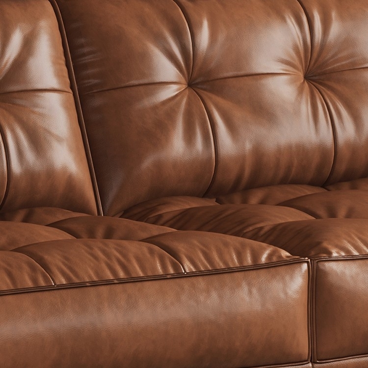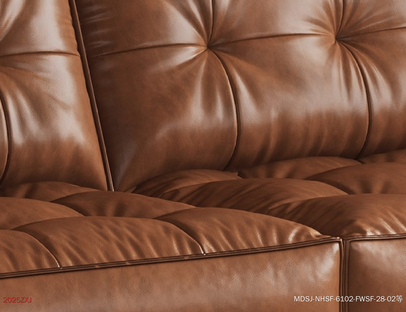 产品材质:框架:进口8cm宽落叶松+3.8蛇形碳金弹簧+7cm金色加密牛筋平衡绷带+面料:接触面亮光油蜡头层牛皮、非接触面仿皮+填充物:无粉高密度海绵、高回弹无粉海绵+13CM银色不锈钢