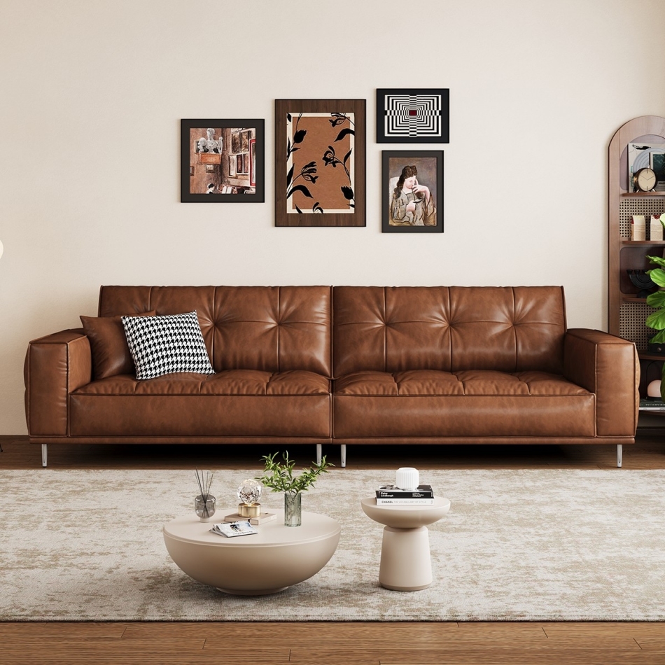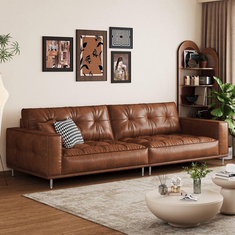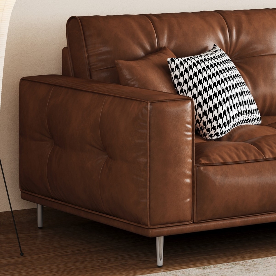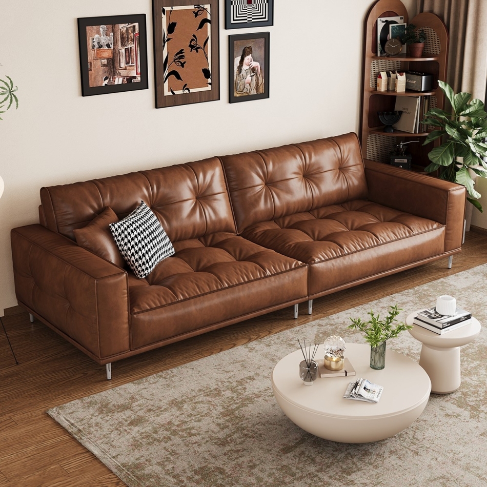 中古风客厅家用组合沙发 简约公寓亮光油蜡头层牛皮直排沙发