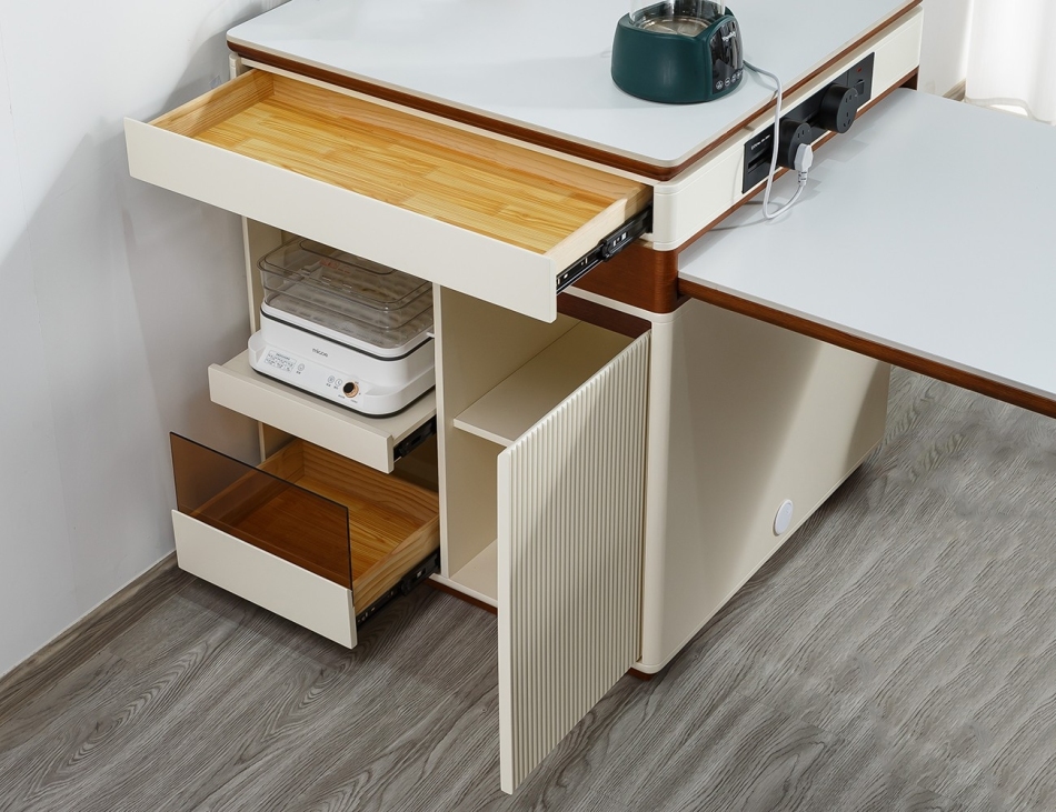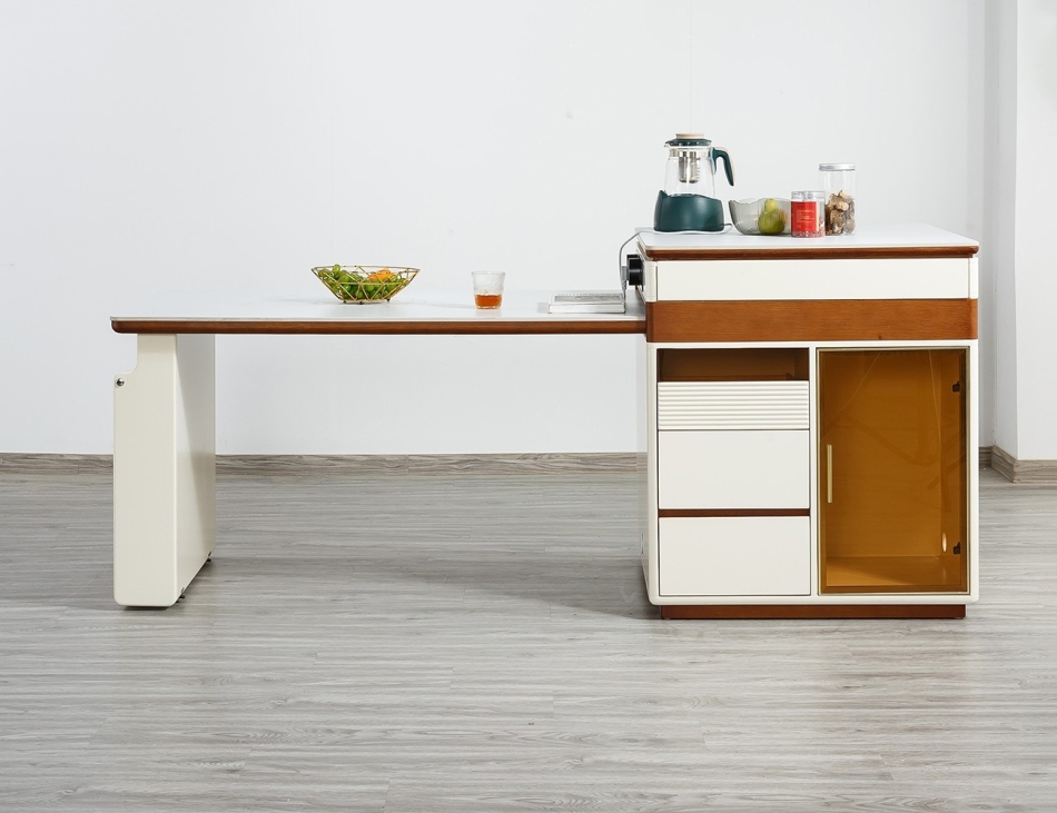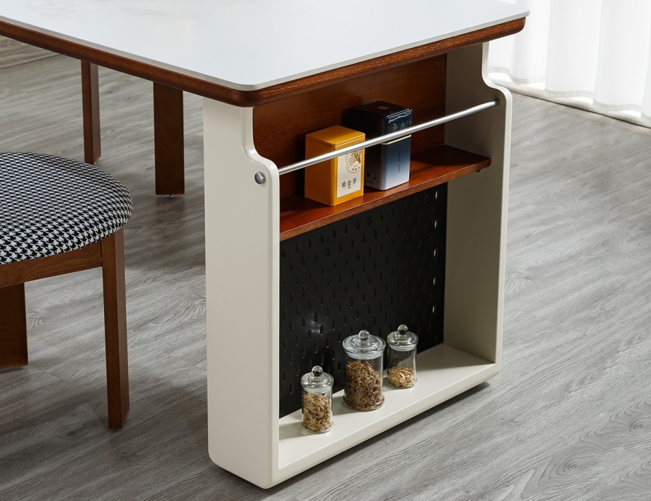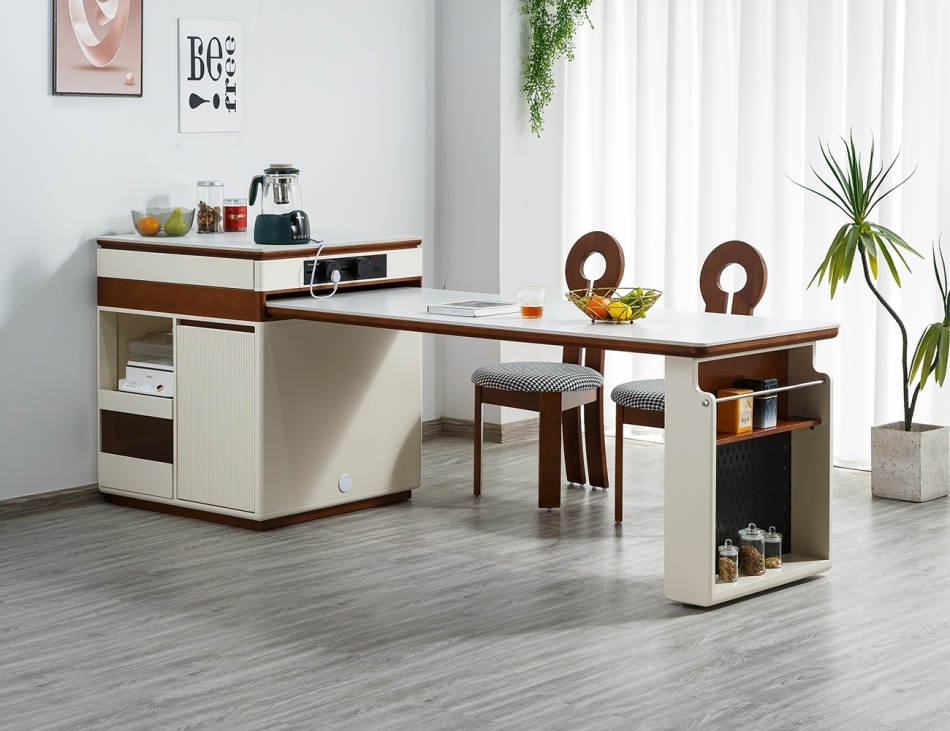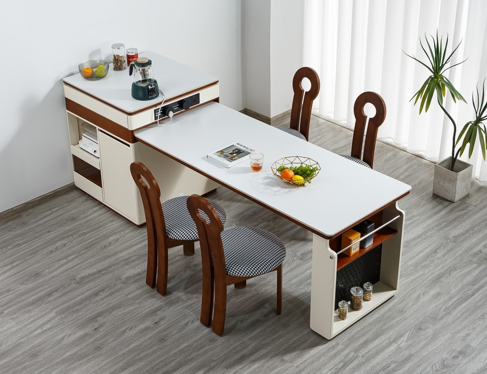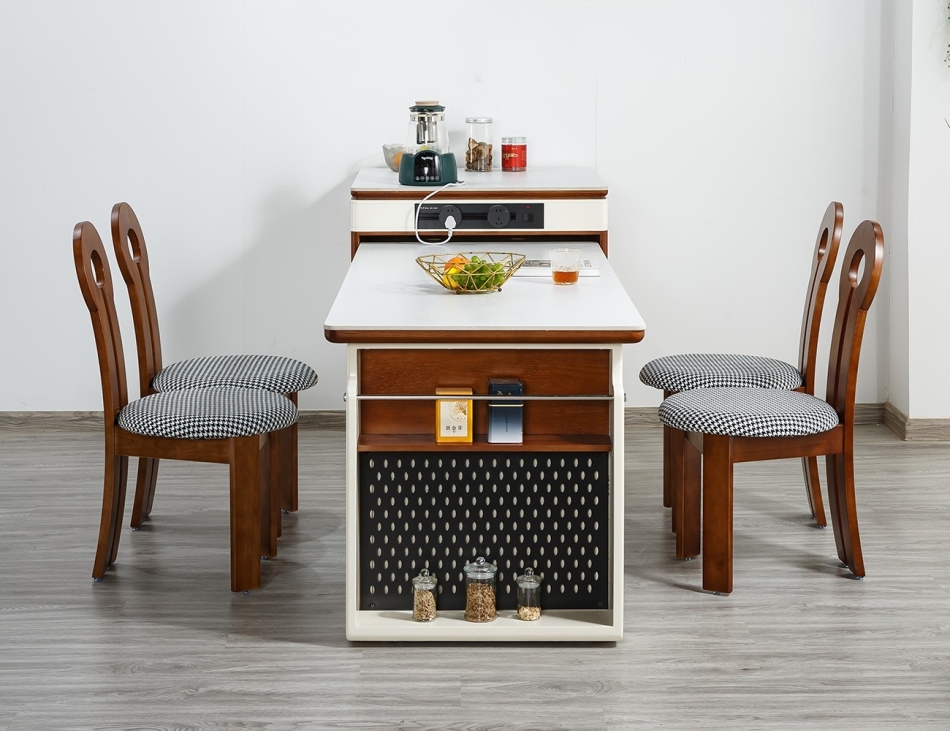 中古风家用大小户型餐厅多功能可拉伸岛台带轨道插头多用岛台