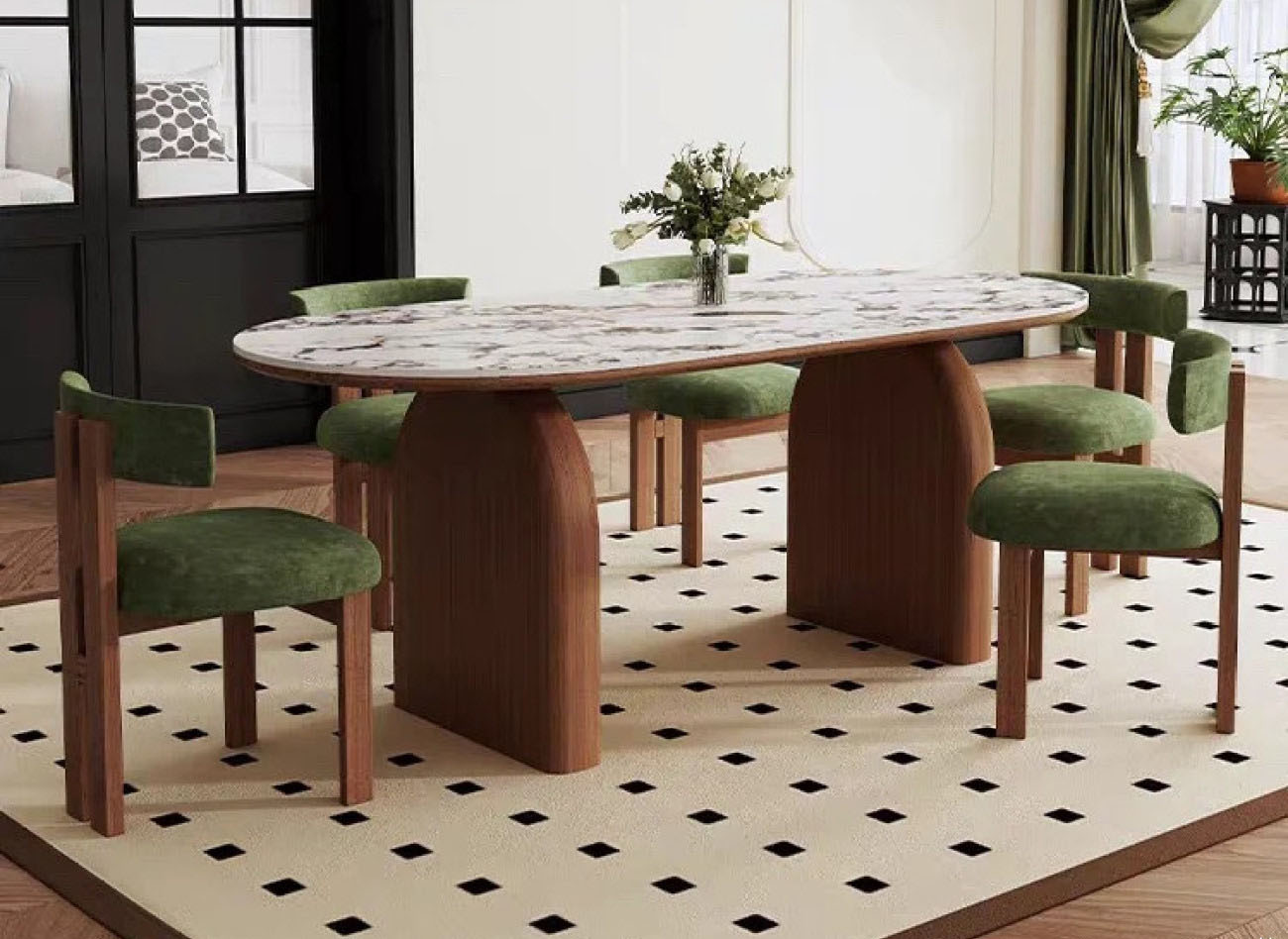 中古风系列 复古时尚宝格丽岩板餐桌中古风家用长方形饭桌