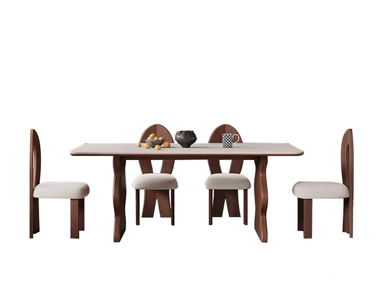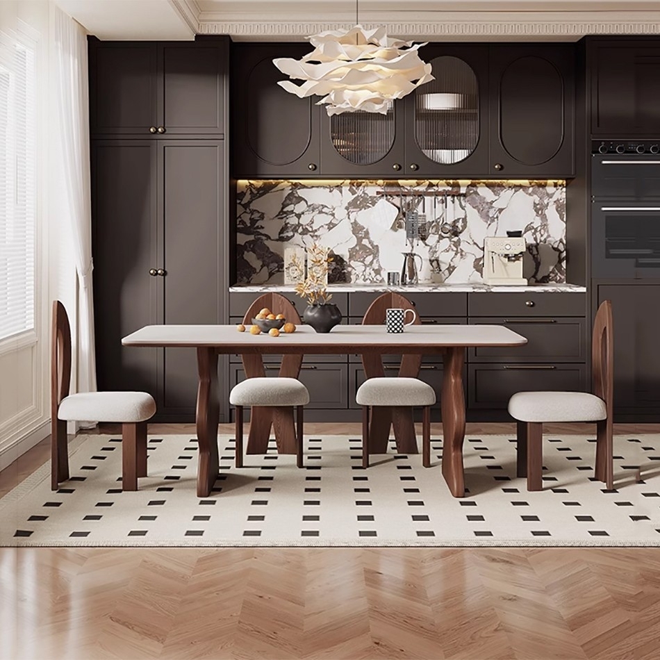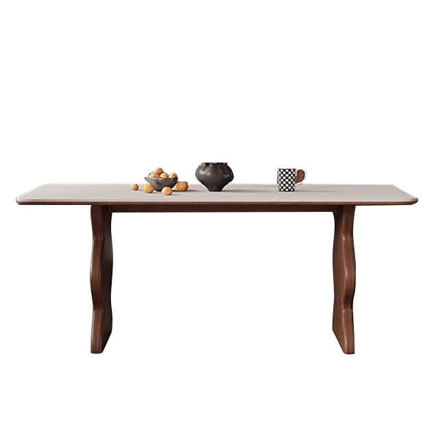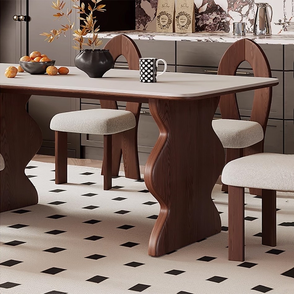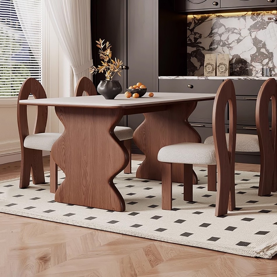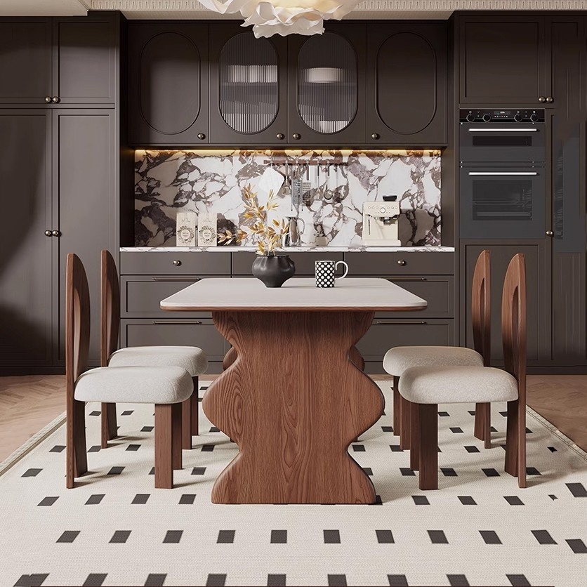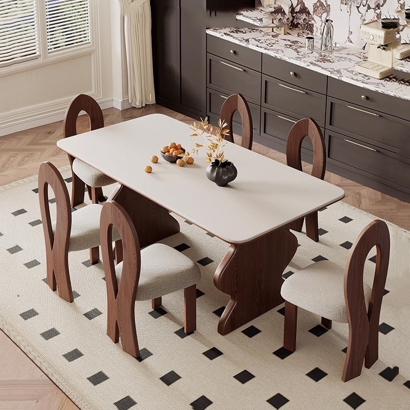 中古风系列 家用餐厅实木复古中古风哑光纯白岩板长餐桌