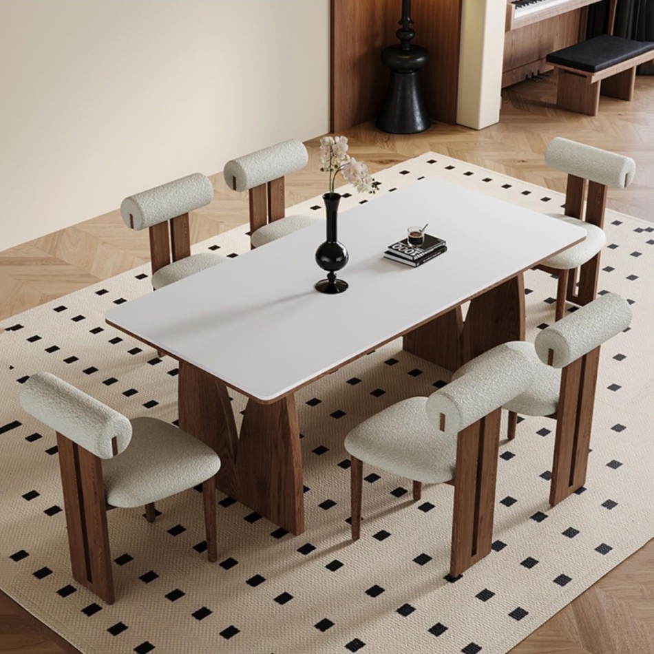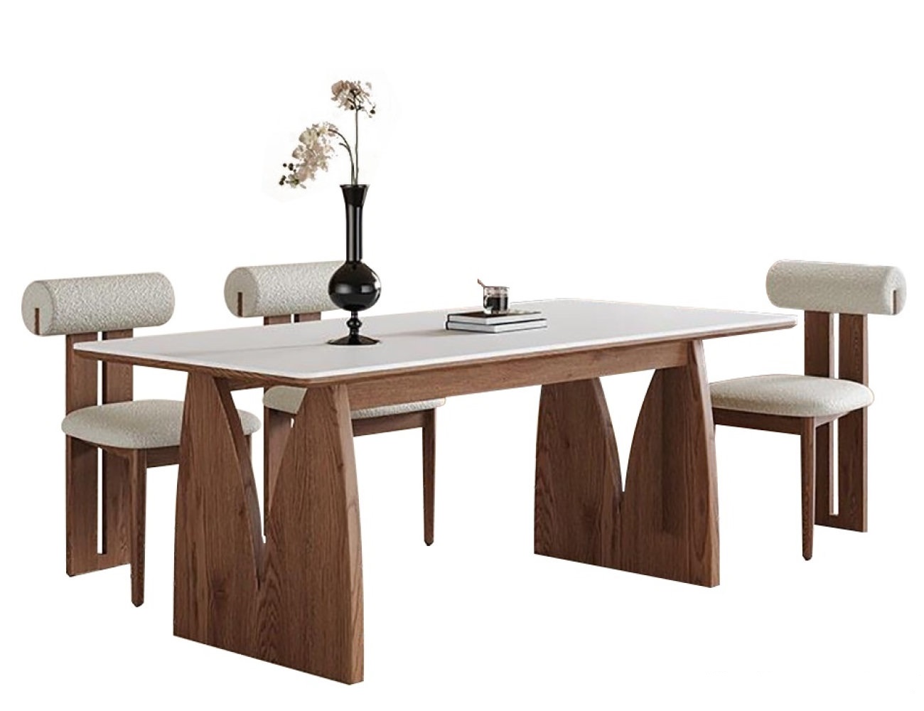 中古风系列 简约复古实木岩板餐桌中古风家用餐厅长餐桌