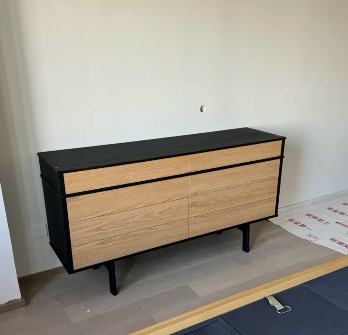 中古风系列 简约家用实木夹板贴木皮边柜