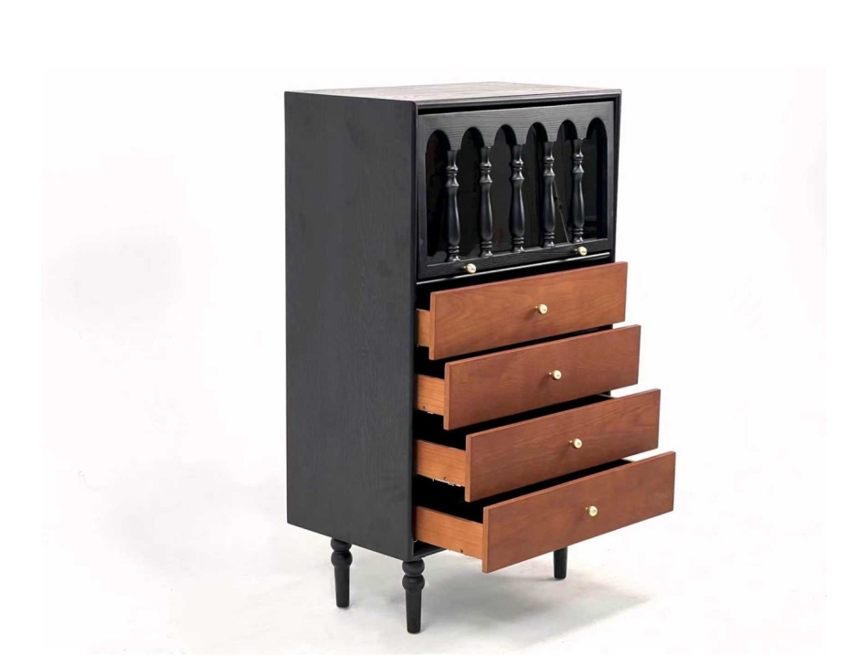 中古风系列 霍格沃茨边柜创意复古中古风黑色胡桃双拼边柜