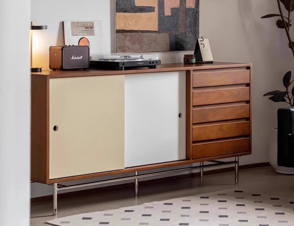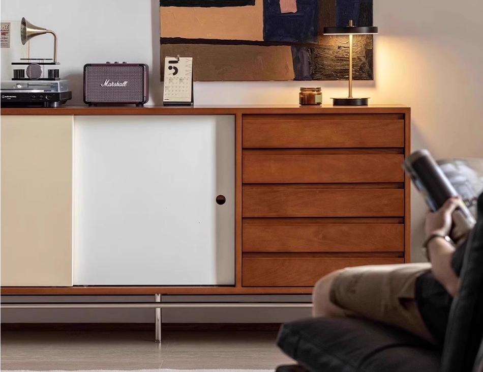 中古风系列 餐厅家用实木抽屉收纳置物储物柜餐边柜