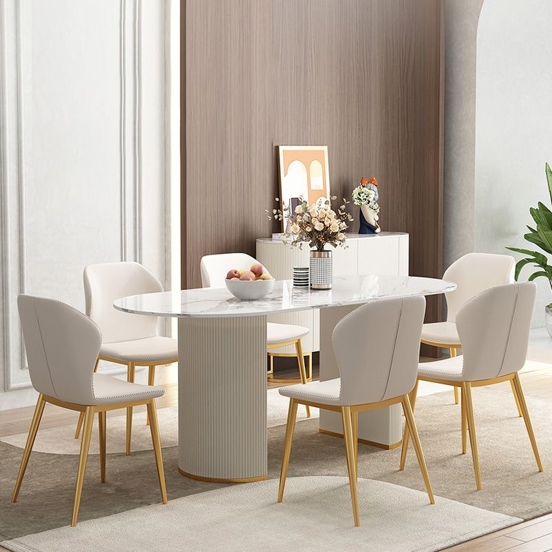公寓时尚网红椭圆形餐台家用餐厅亮光岩板轻奢餐桌