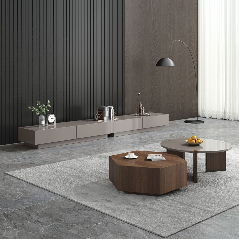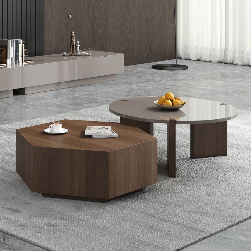 创意时尚客厅意式极简烟熏色高矮茶几组合(烟熏木皮)
