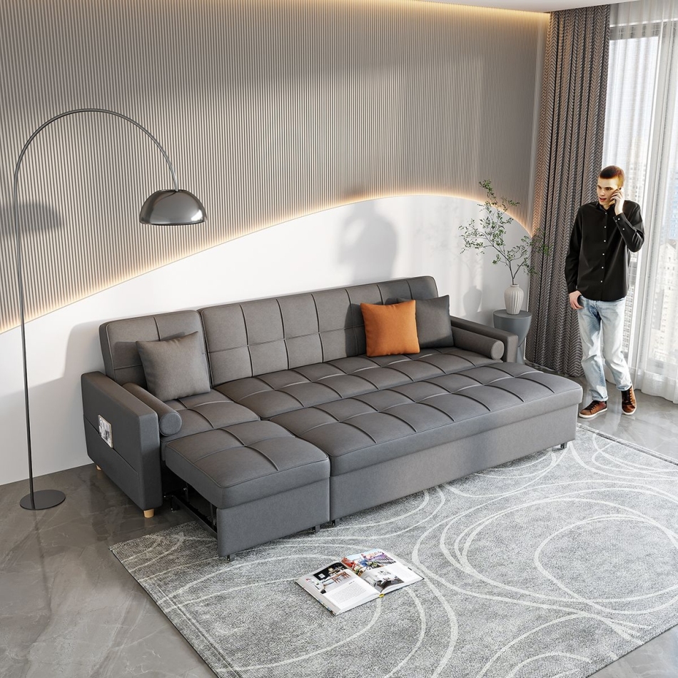 产品尺寸:沙发:(收拢)长2450*宽900*高950mm、床:(展开)长2450*宽1880*高950mm