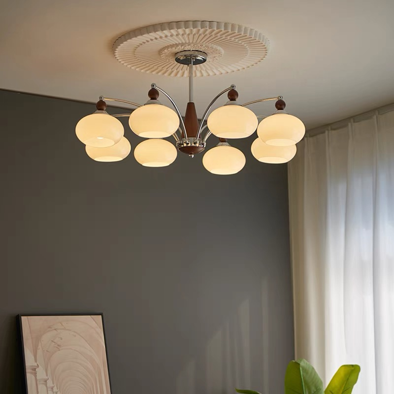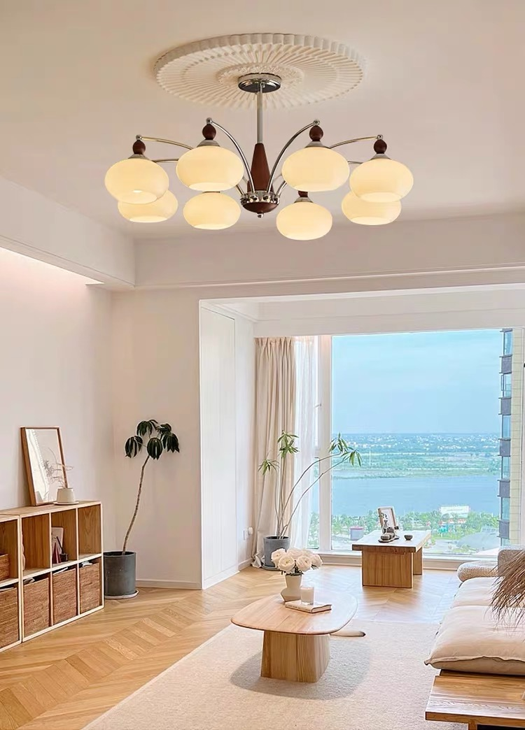 吊灯系列 简约复古中古风胡桃木纹吊灯客厅主灯