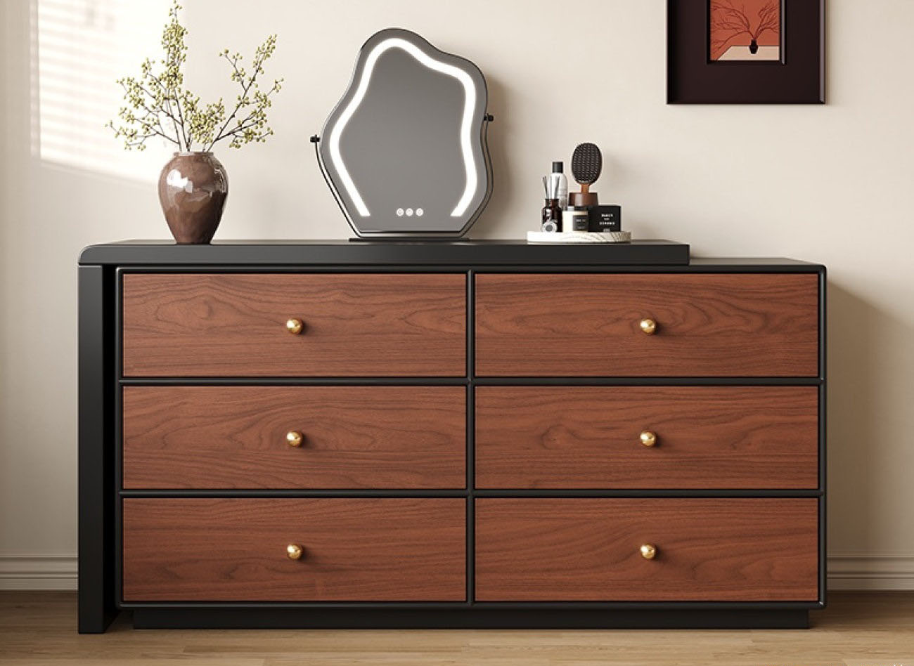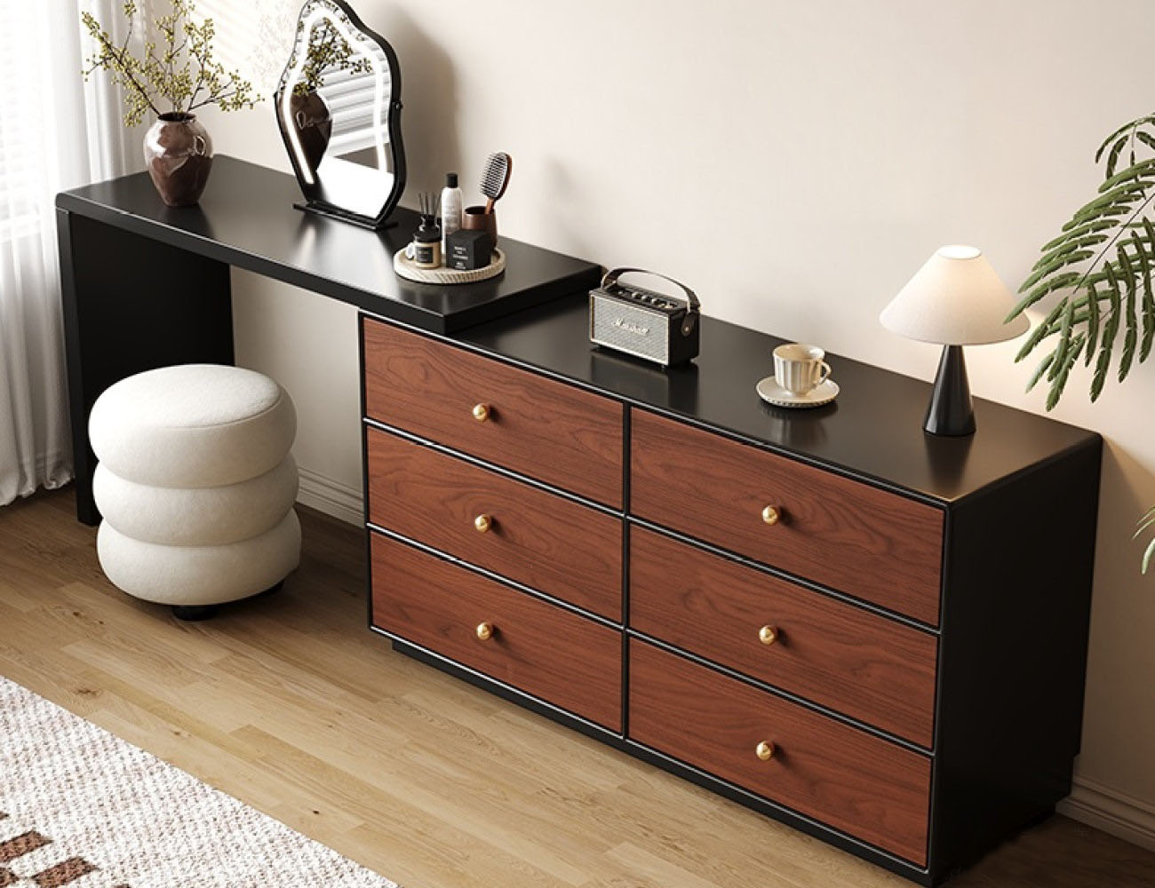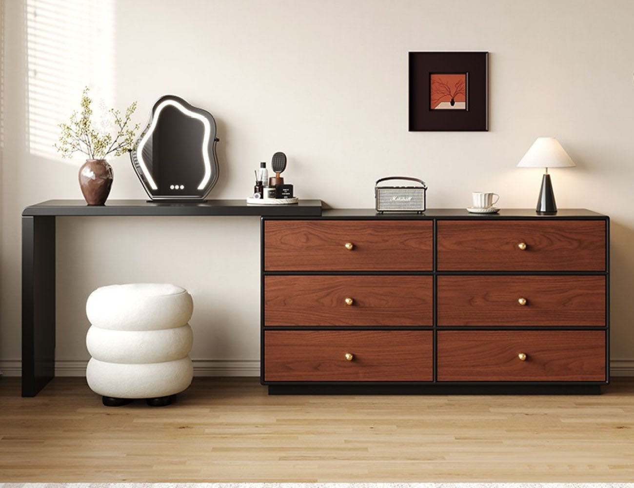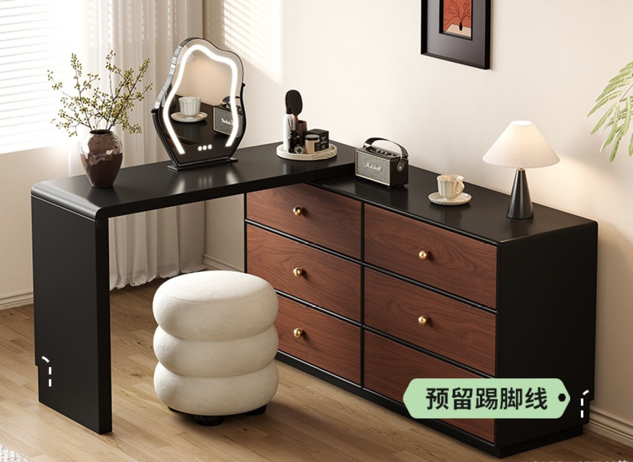 大小户型卧室收纳妆台一体柜复古中古风带妆镜妆凳伸缩款梳妆台