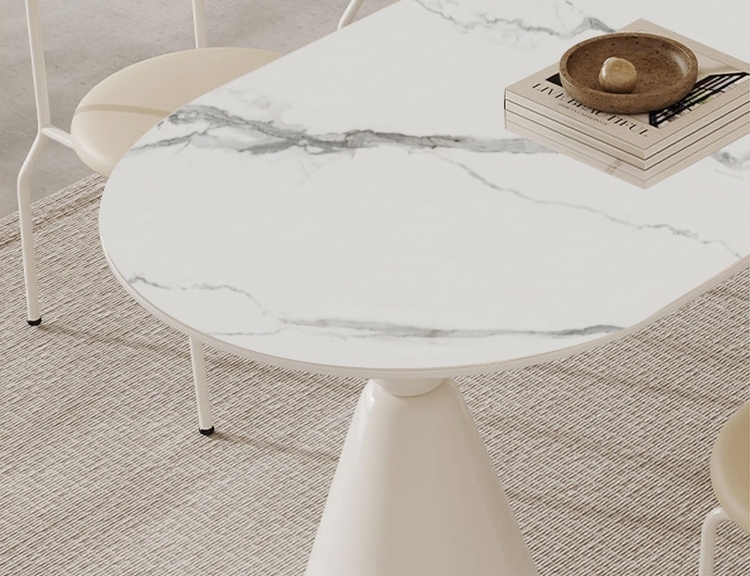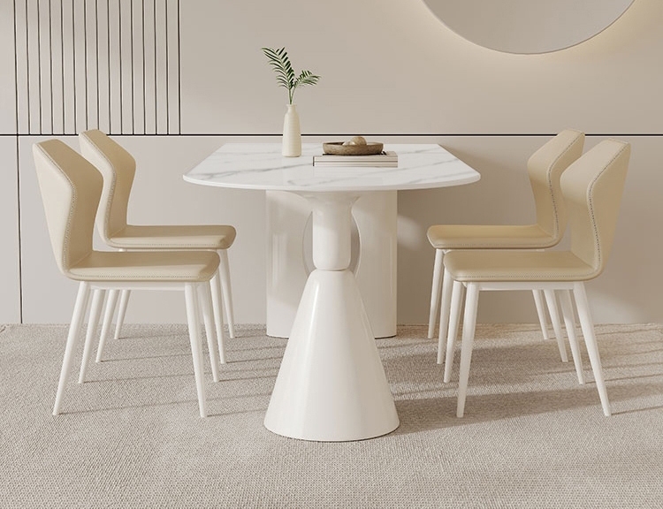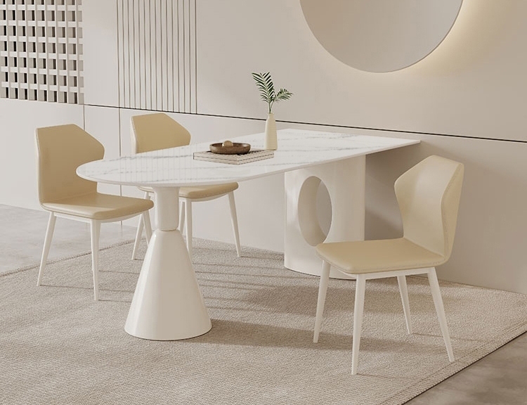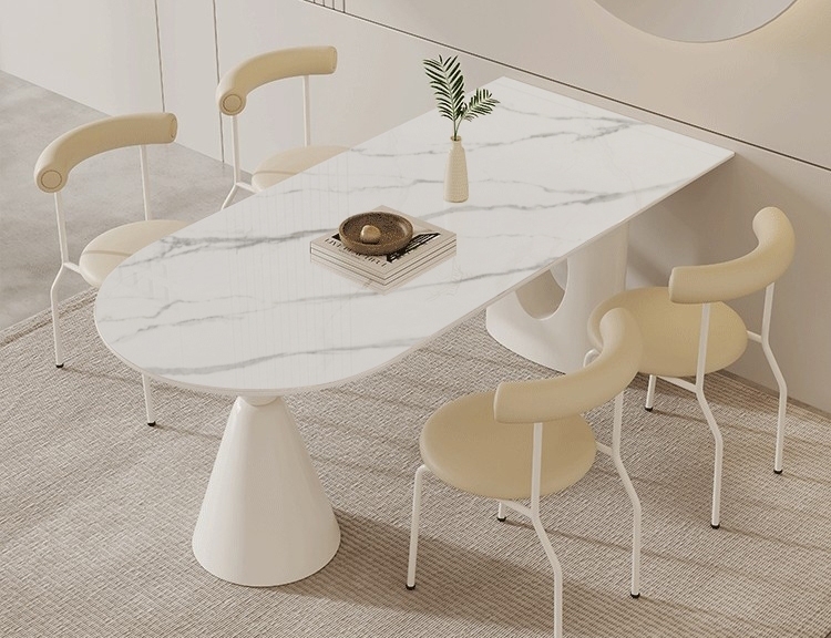 设计师款-大象腿餐桌 简约时尚亮光雪山白岩板台面餐台极简风家用餐厅长餐桌