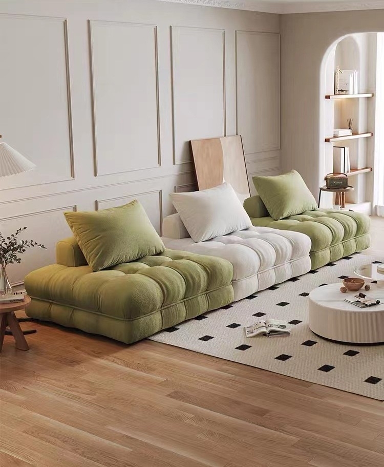 奶油风布艺沙发 简约客厅春蚕绒羽绒组合沙发
