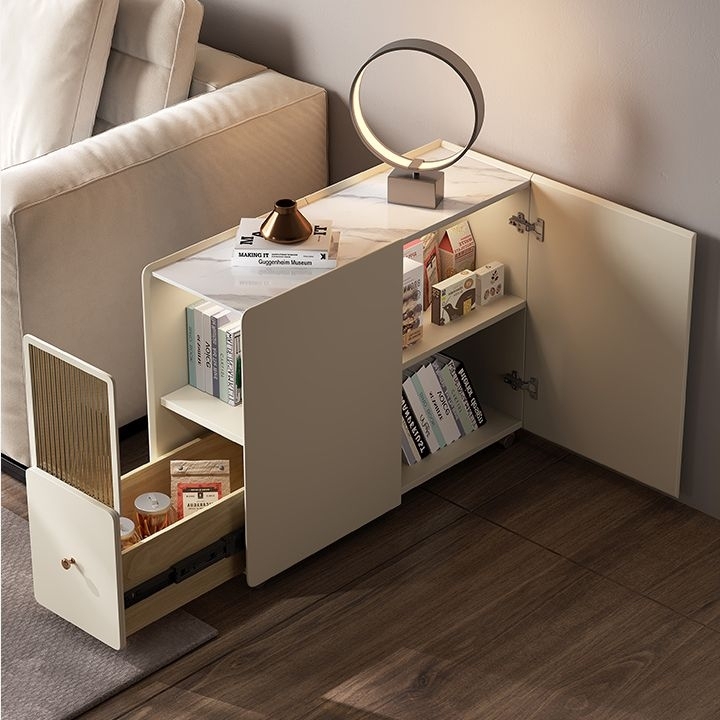 奶油风 时髦岩板设计家用客厅卧室可移动边柜