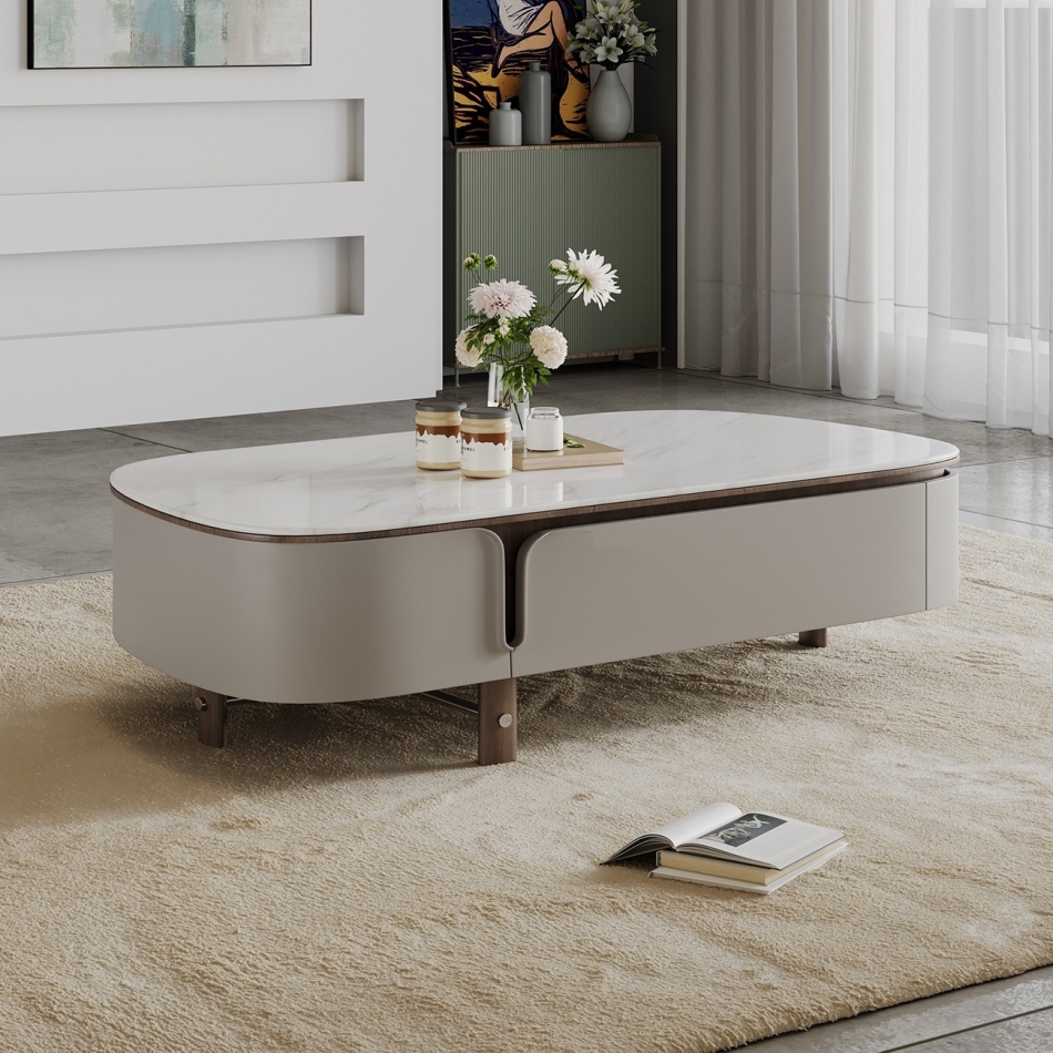 客厅家用小户型简约微晶石茶几极简时尚收纳异形茶几