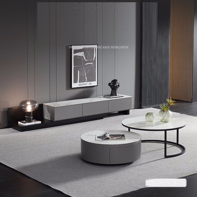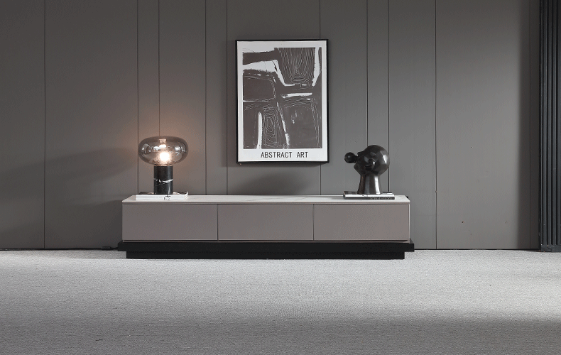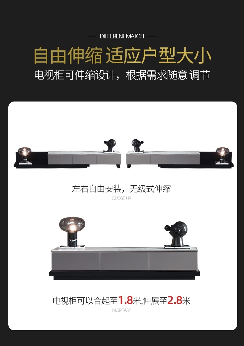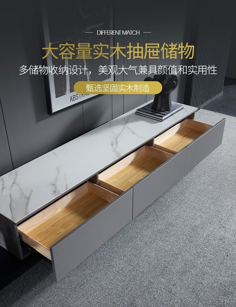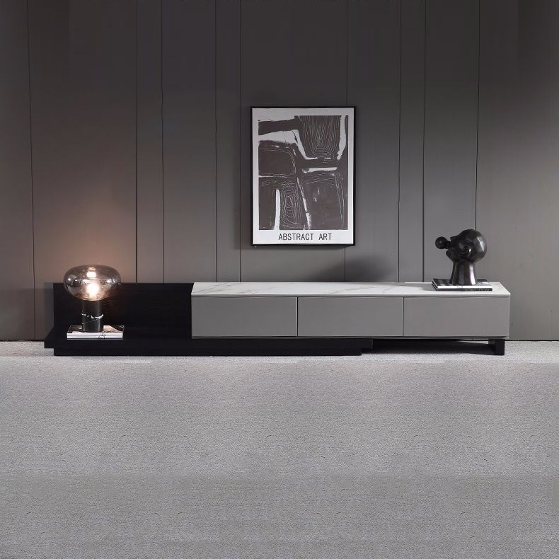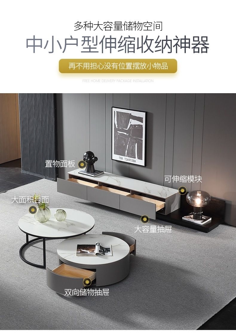 客厅背景墙收纳柜时尚极简电视柜功能伸缩款地柜(岩板-雪山石)