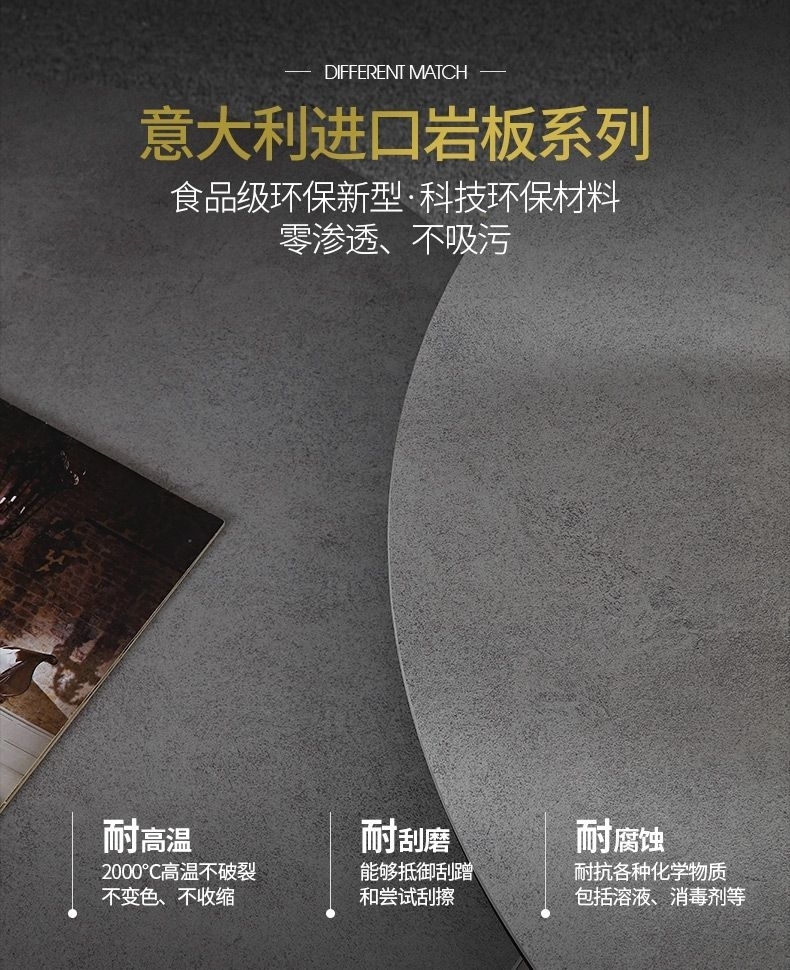 产品材质:框架:6mm哑光雪山石岩板台面+烤漆柜体+MDF密度板