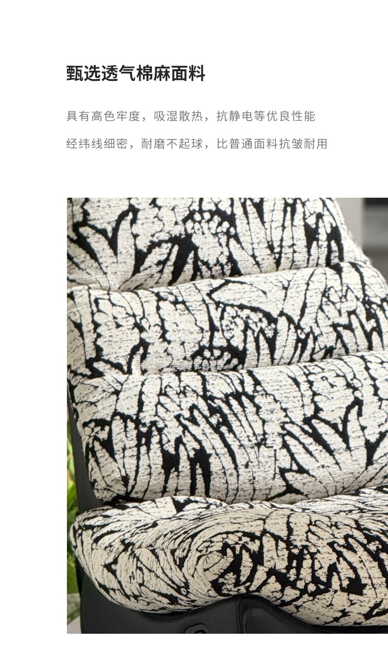 产品材质:框架:主体为木架+碳素钢+面料:棉麻,加厚猫抓皮配皮+填充物:海绵+可摇可转可躺