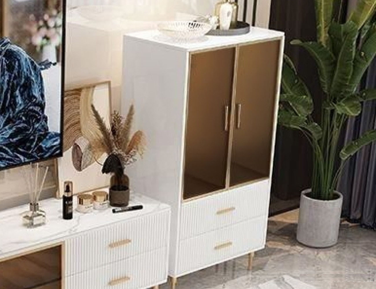 家用轻奢时尚透视玻璃门高脚收纳边柜