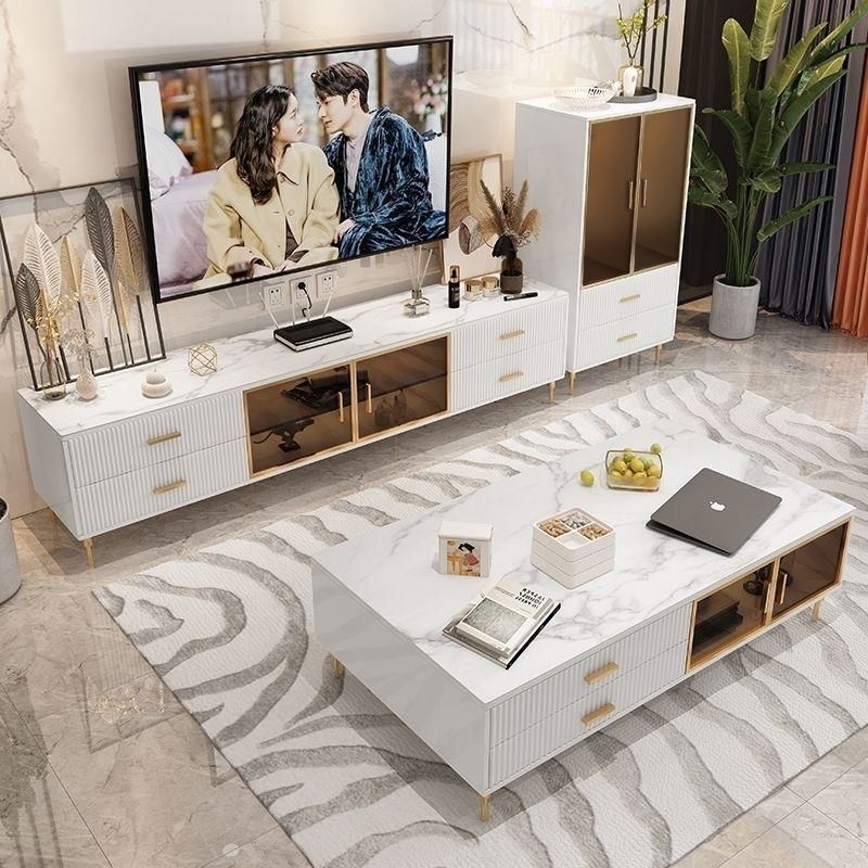 产品材质:框架:高级密度板+架子不锈钢钛金封釉+钢琴烤漆+台面:6mm哑光雪山白岩板+茶色玻璃