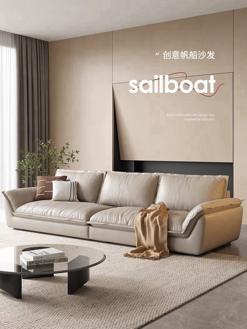 帆船沙发 简约客厅极简风家用羽绒头层牛皮沙发