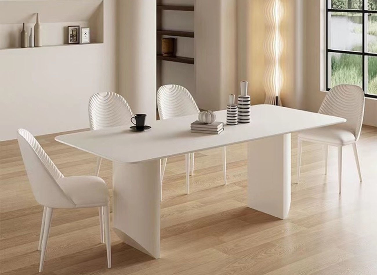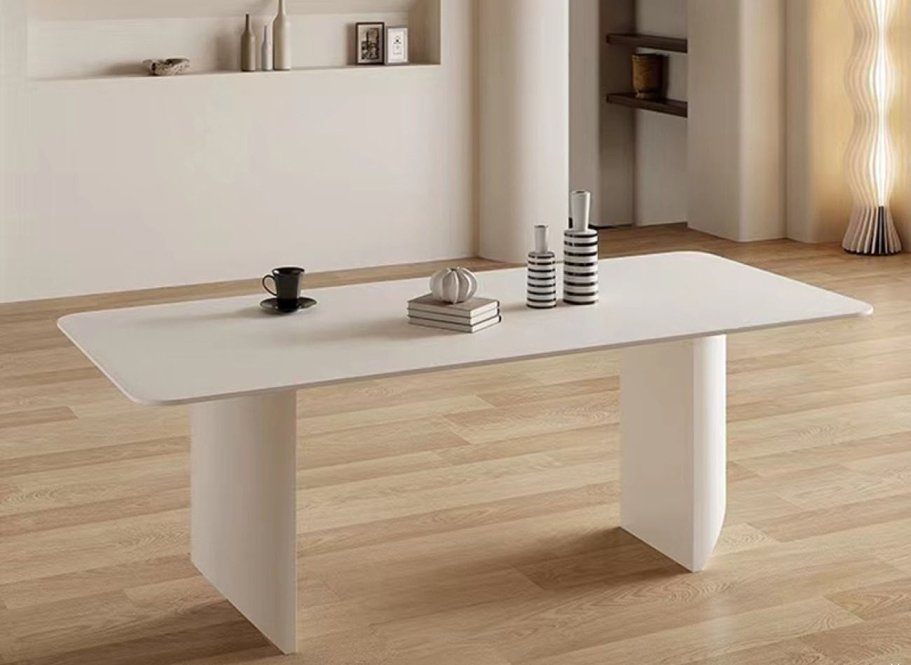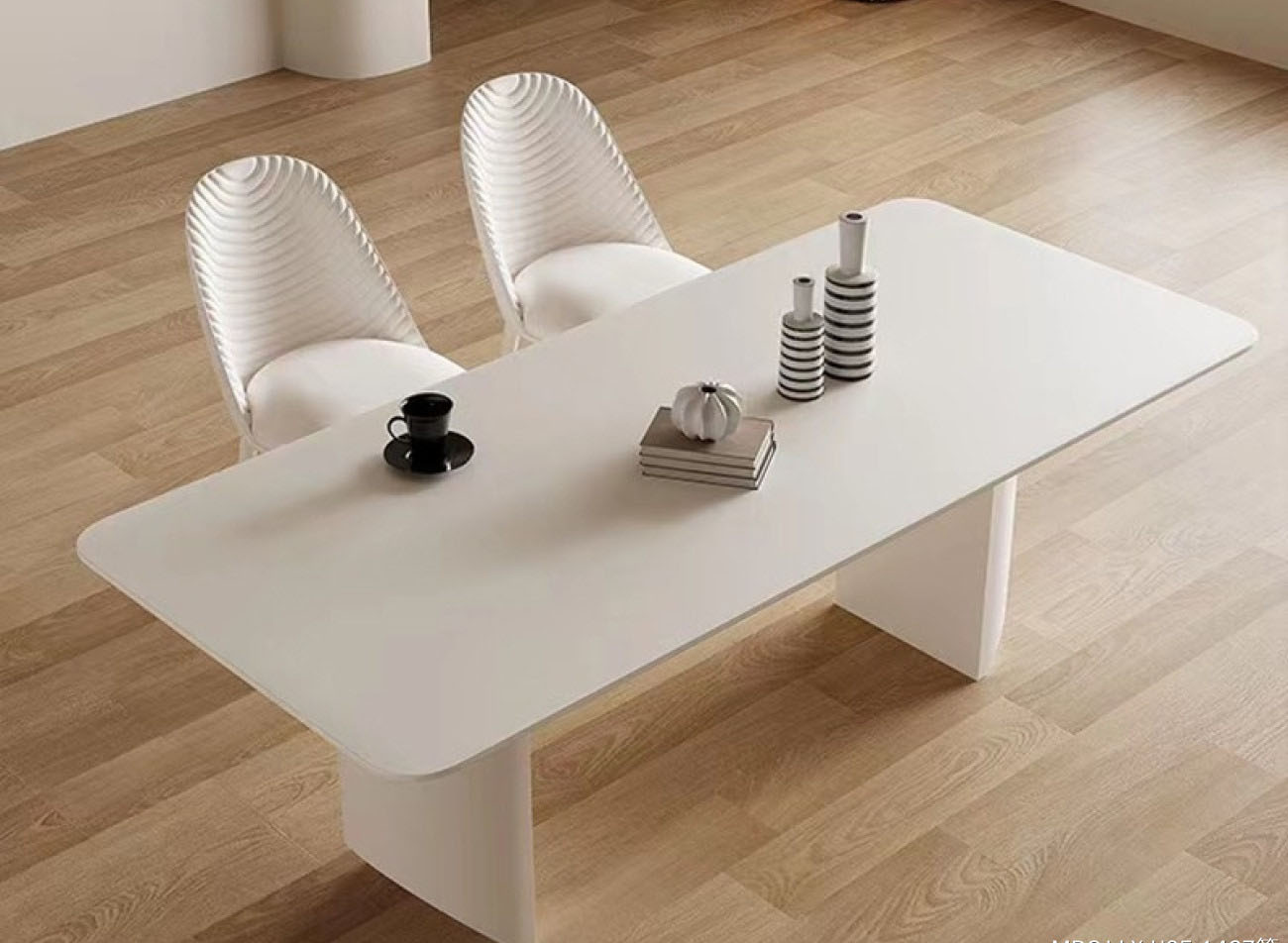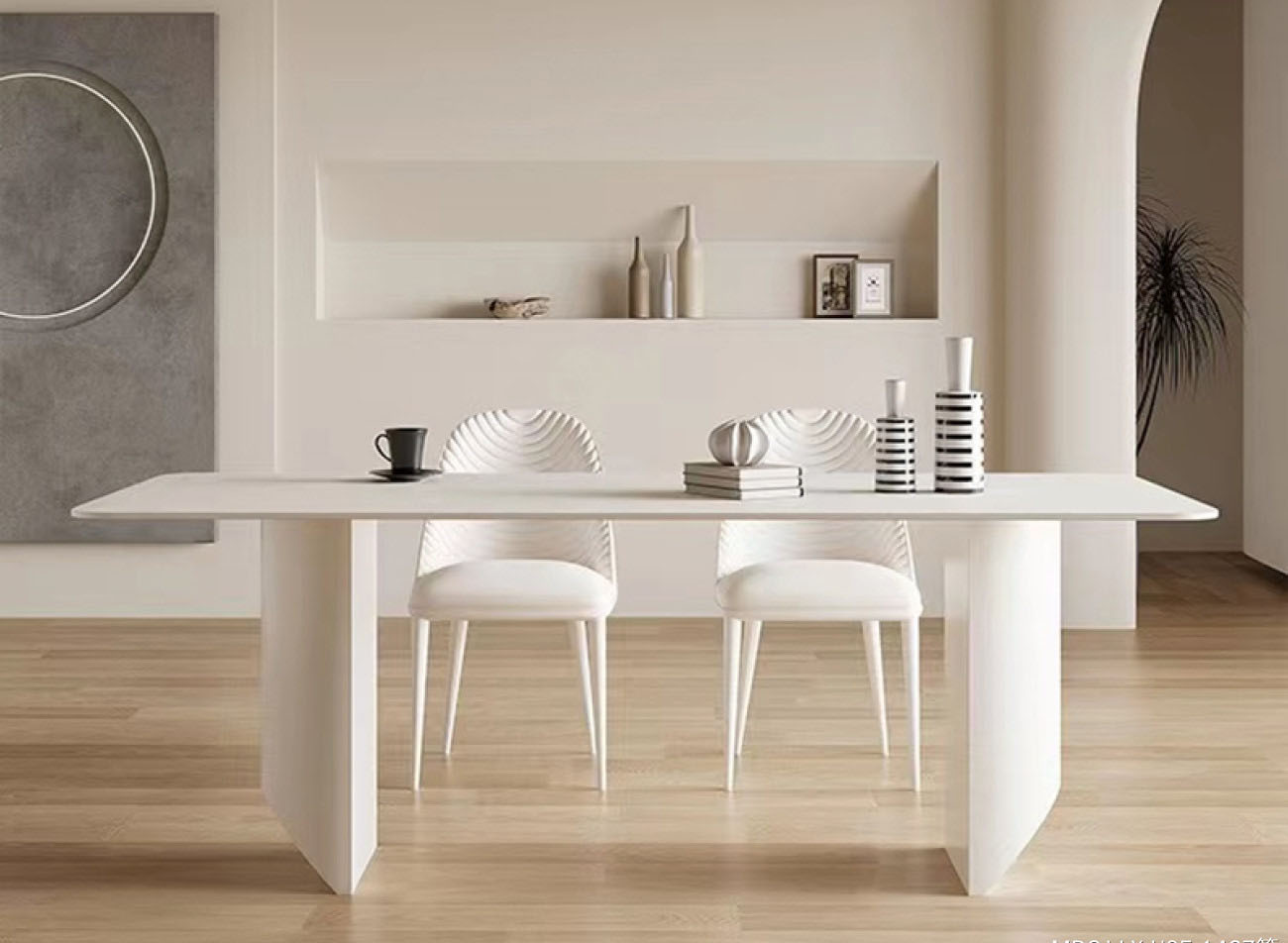 意式奶油风 12mm哑光纯白岩板餐桌简约家用长方形餐台