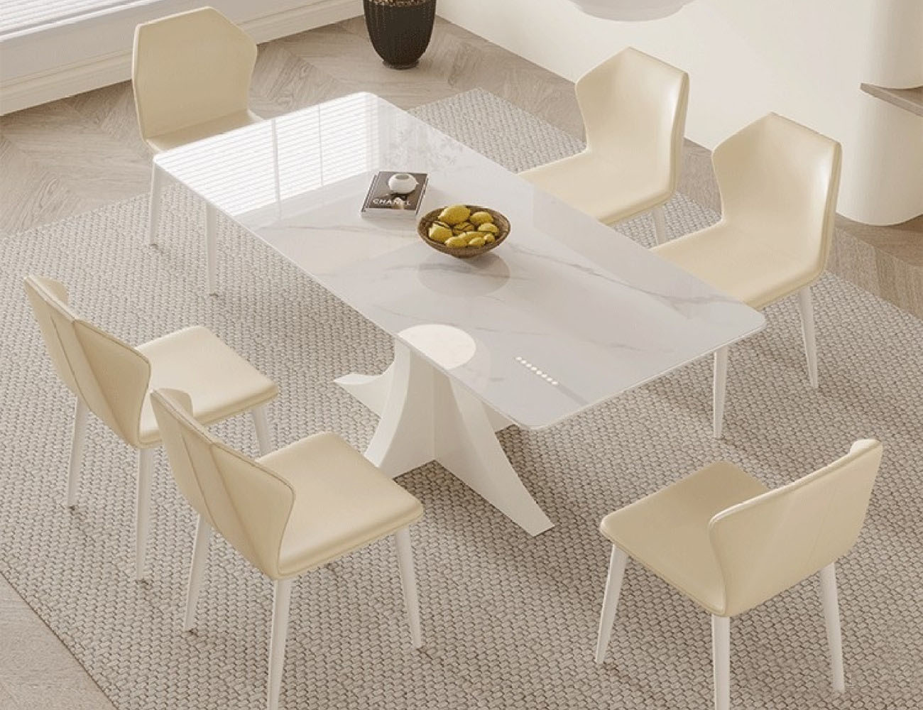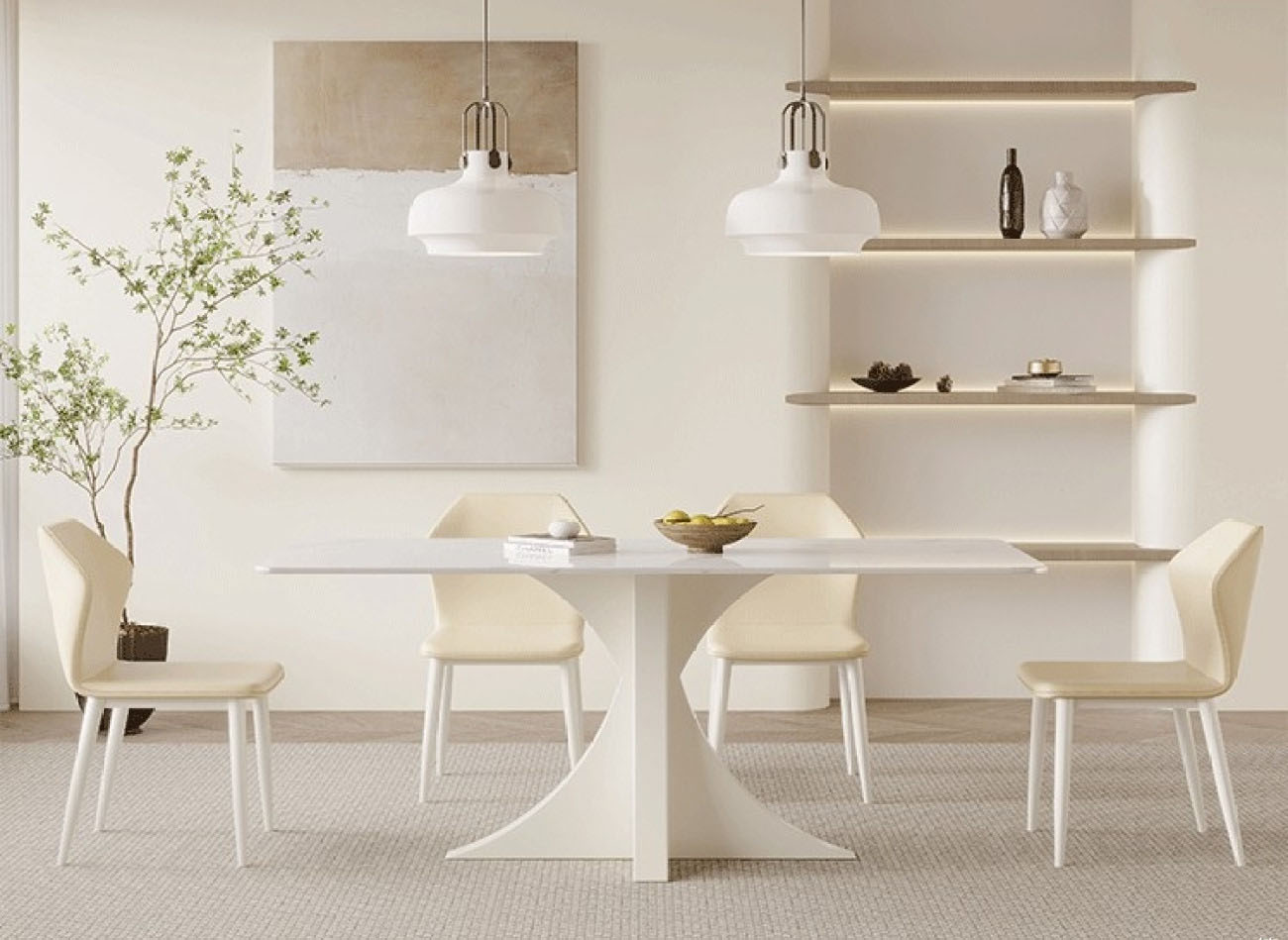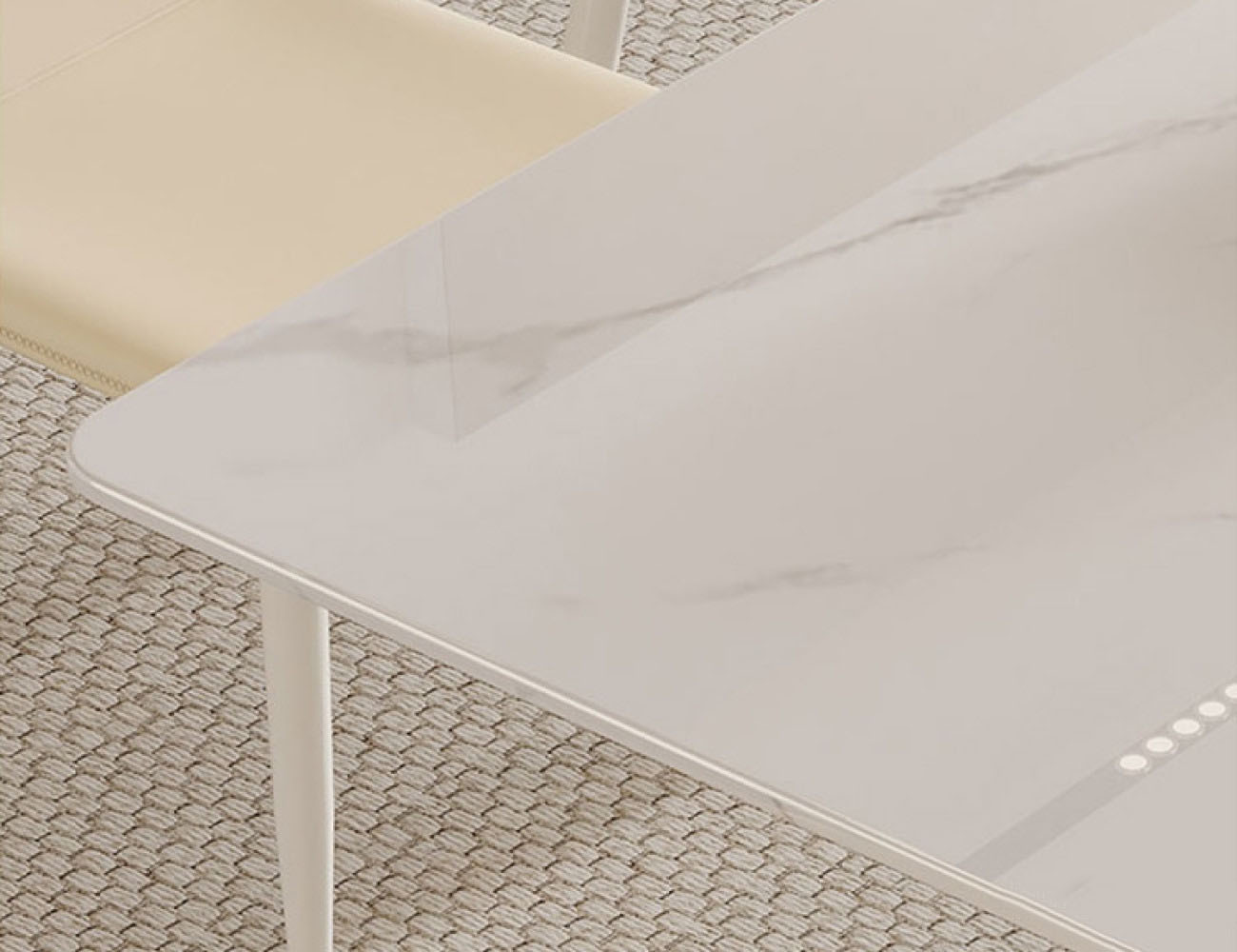 意式奶油风12mm雪山白亮光岩板面家用小户型长餐台