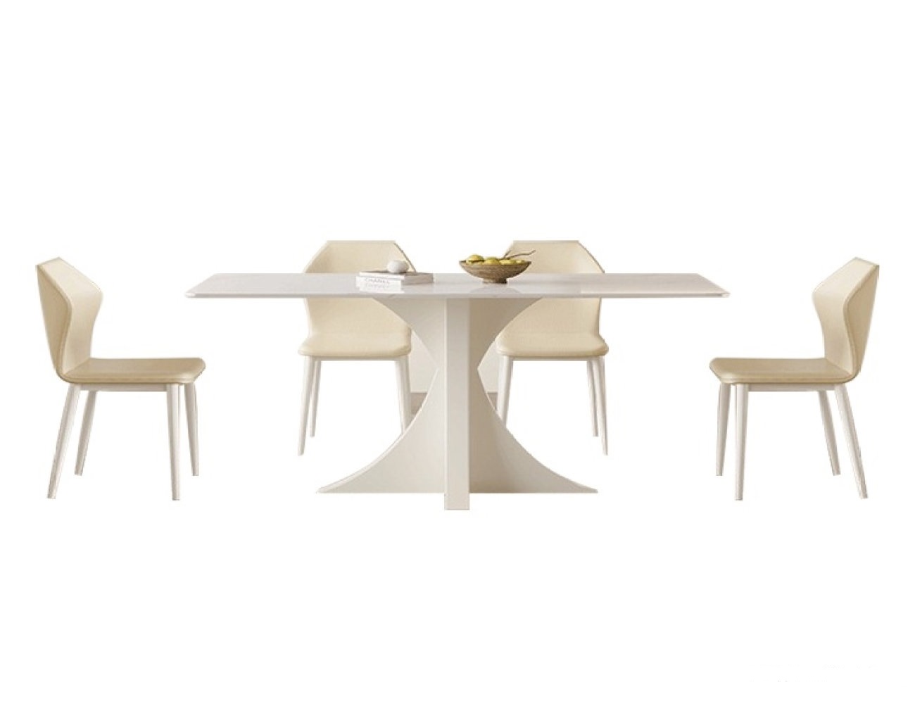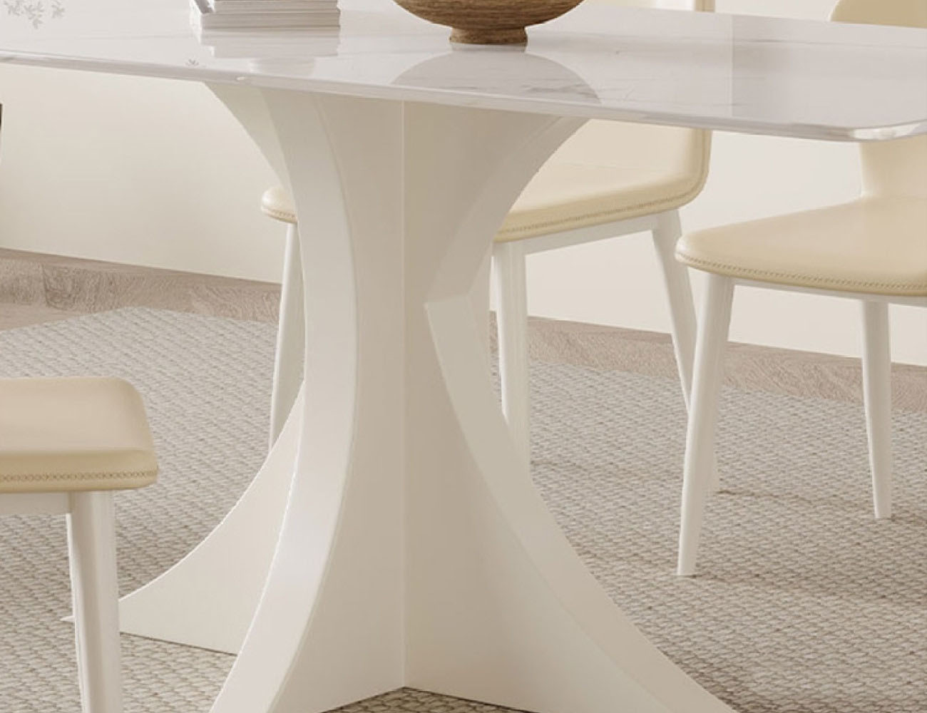 产品材质:台面:12mm亮光雪山白岩板+碳素钢奶油白底座+半托底板