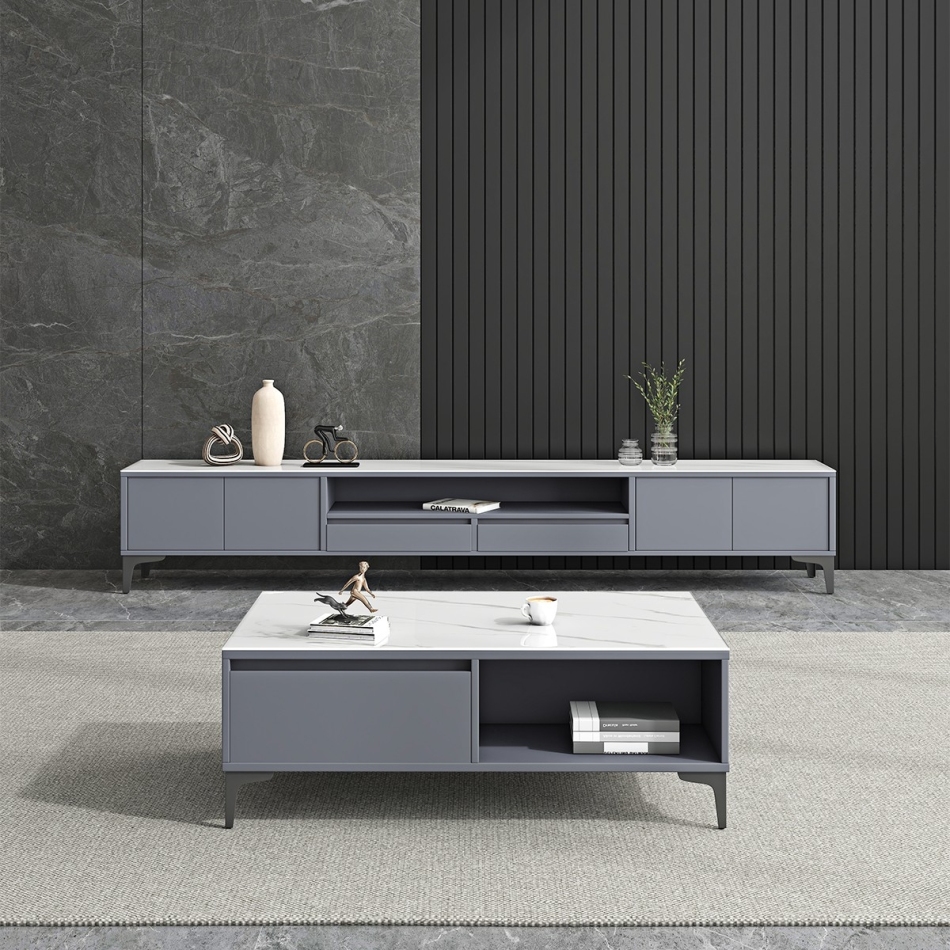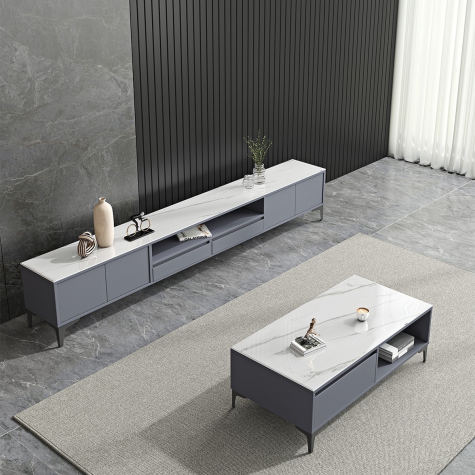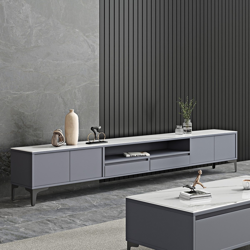 意式客厅简约收纳6mm亮光雪山白岩板极简地柜