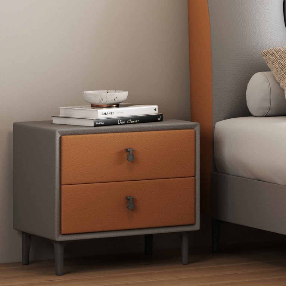 意式极简卧室置物收纳扪皮工艺床边储物柜(MZ1-26+MZ1-5)