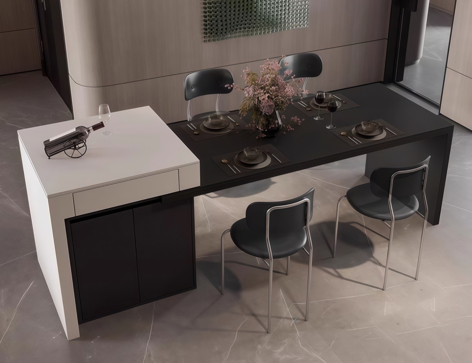 意式极简大小户型家用双拼色哑光岩板台面带充电收纳伸缩一体岛台
