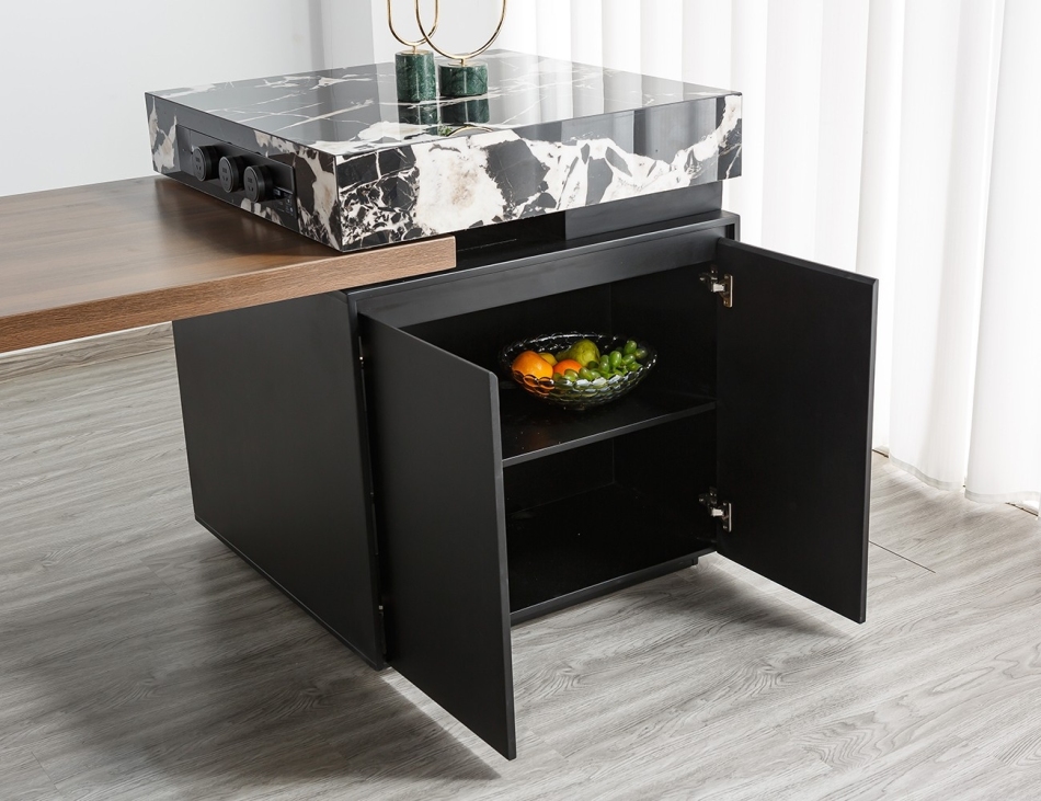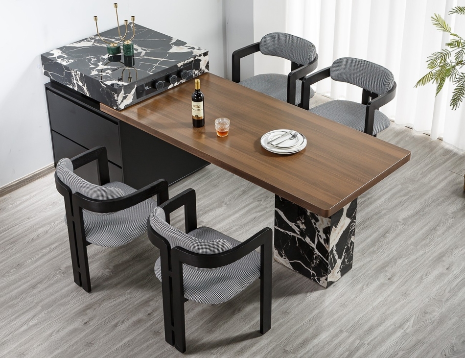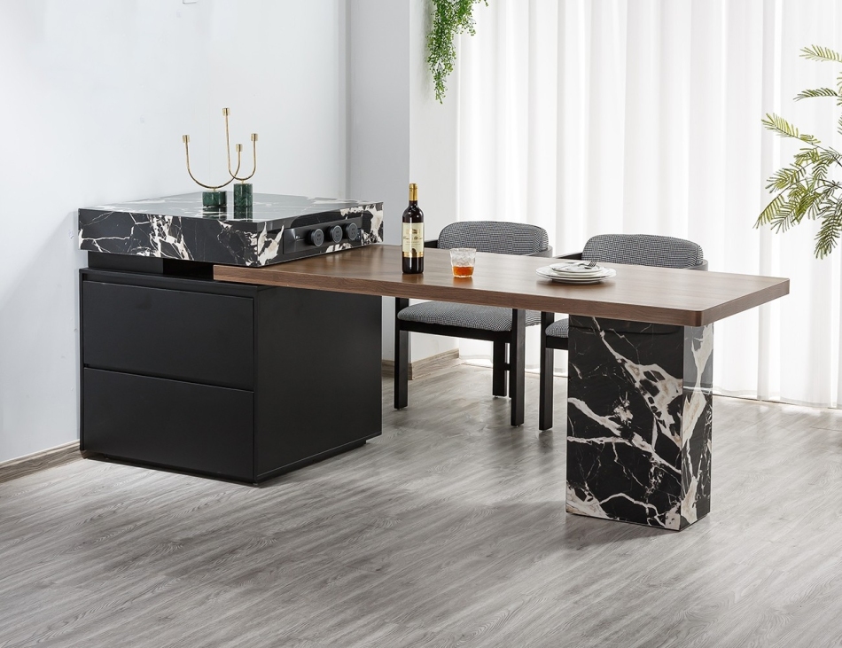 意式极简大小户型家用双拼色哑光岩板台面带充电收纳伸缩一体岛台