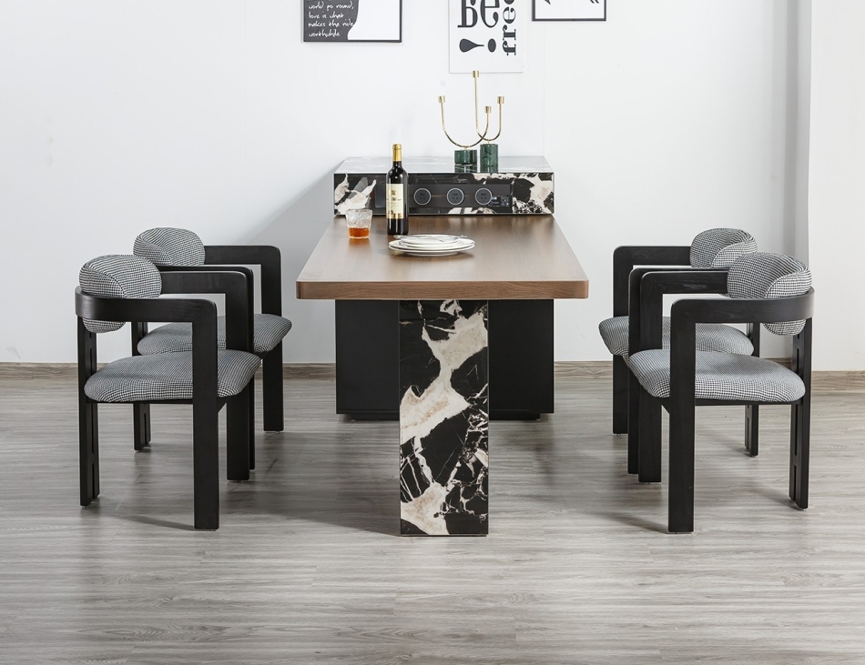 意式极简大户型家用木纹岩板台面餐桌多功能带充电收纳一体岛台