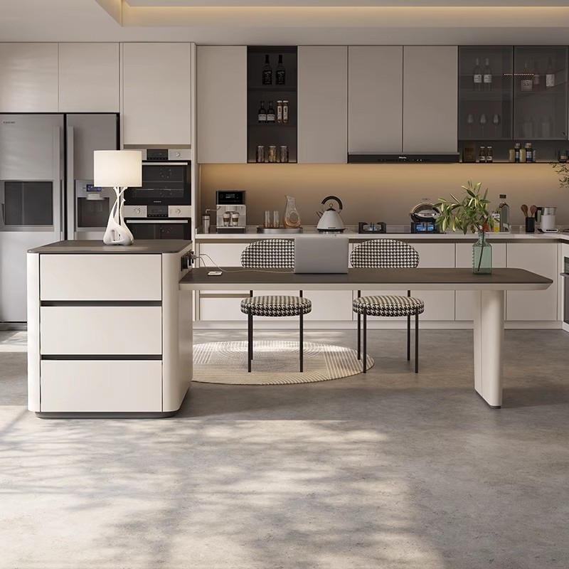 意式极简大户型家用12mm哑光纯黑岩板台面多功能带充电收纳一体岛台