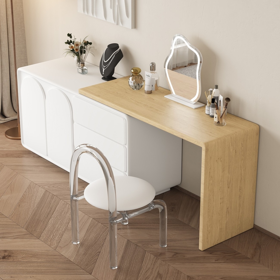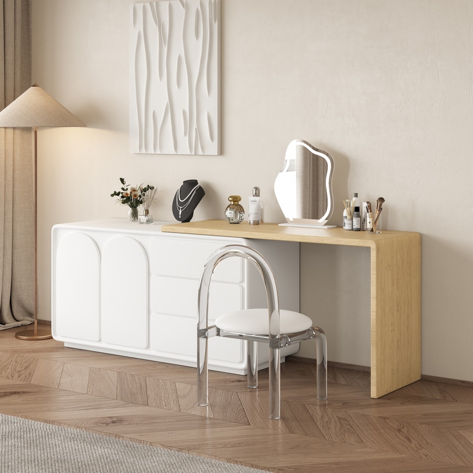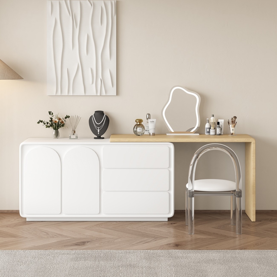 意式极简奶油风烤漆工艺卧室收纳一体妆台伸缩梳妆台