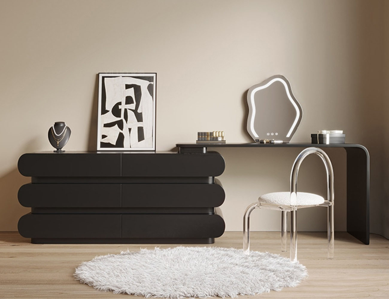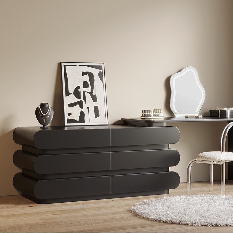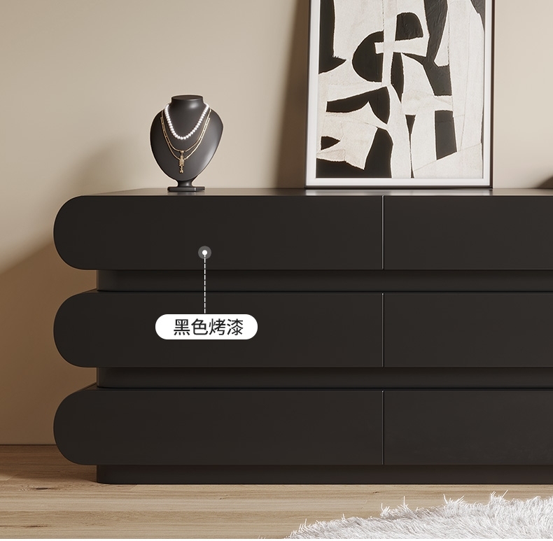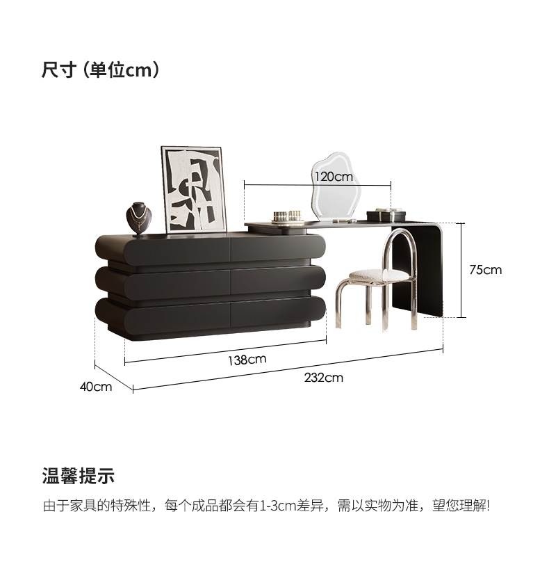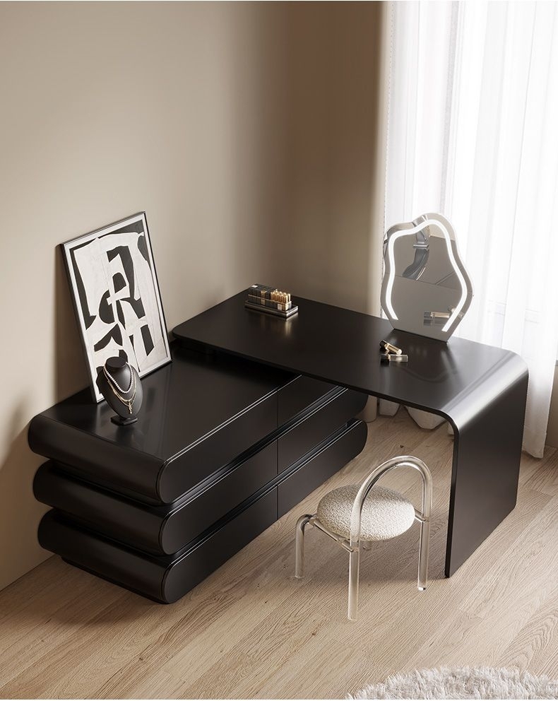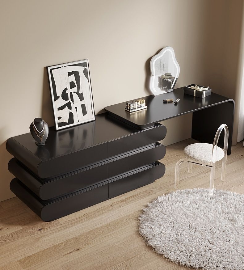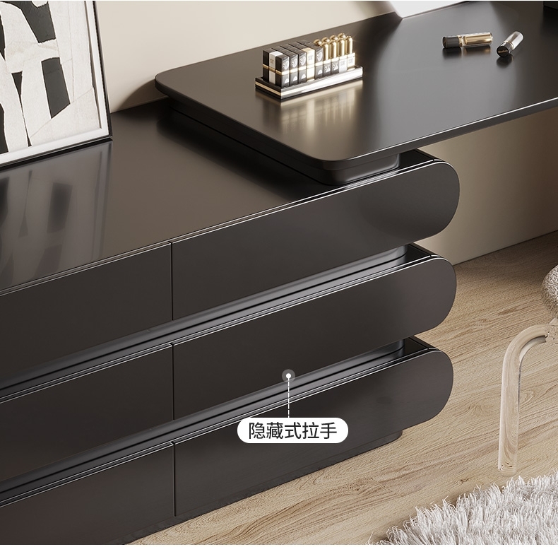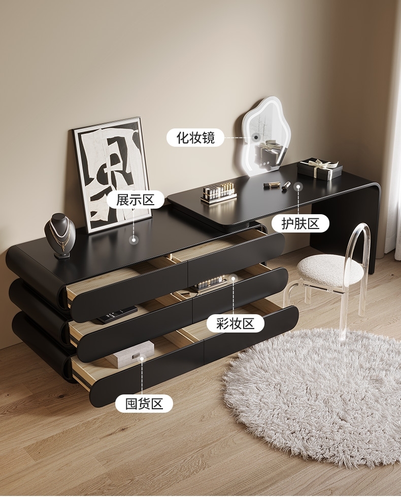 意式极简奶油风黑色妆台卧室家用烤漆工艺梳妆打扮置物妆台