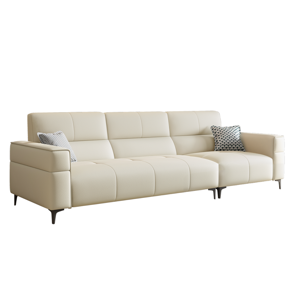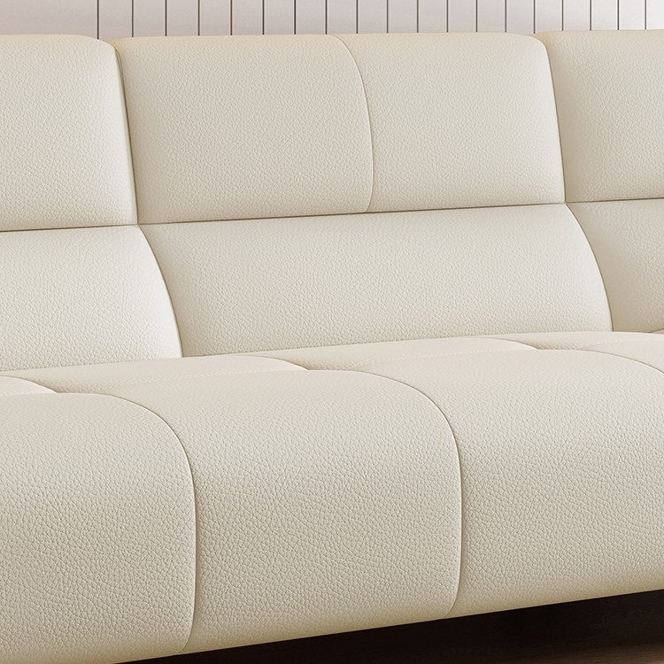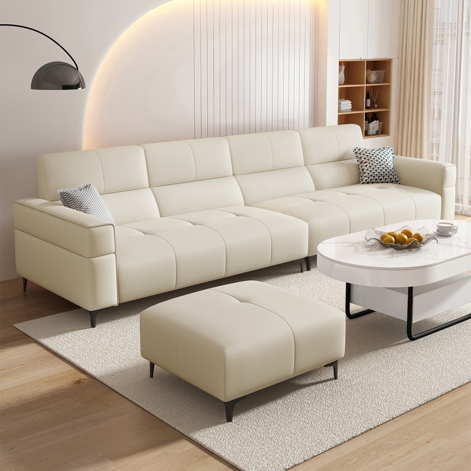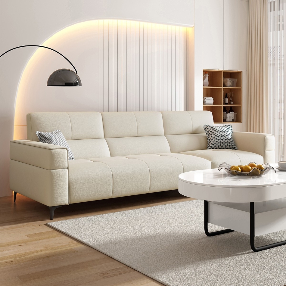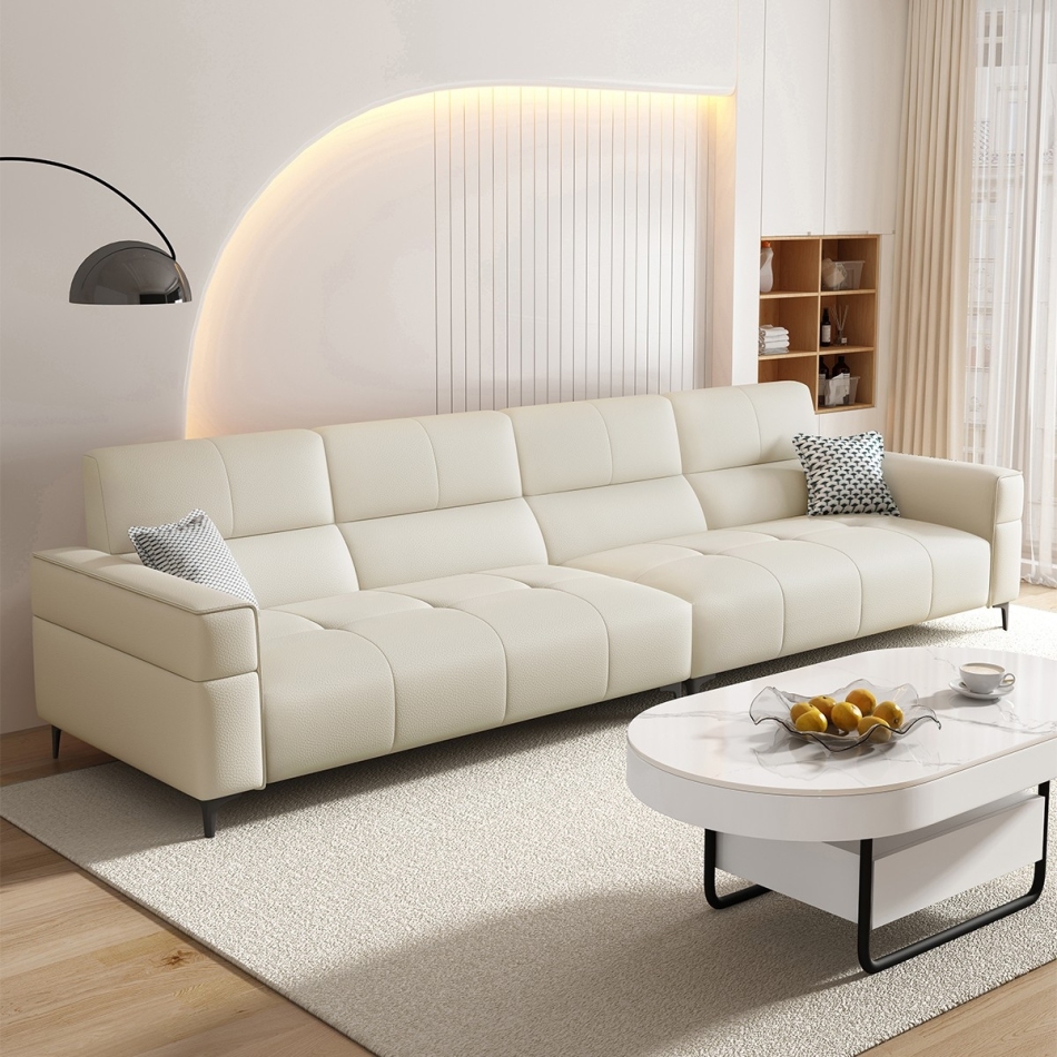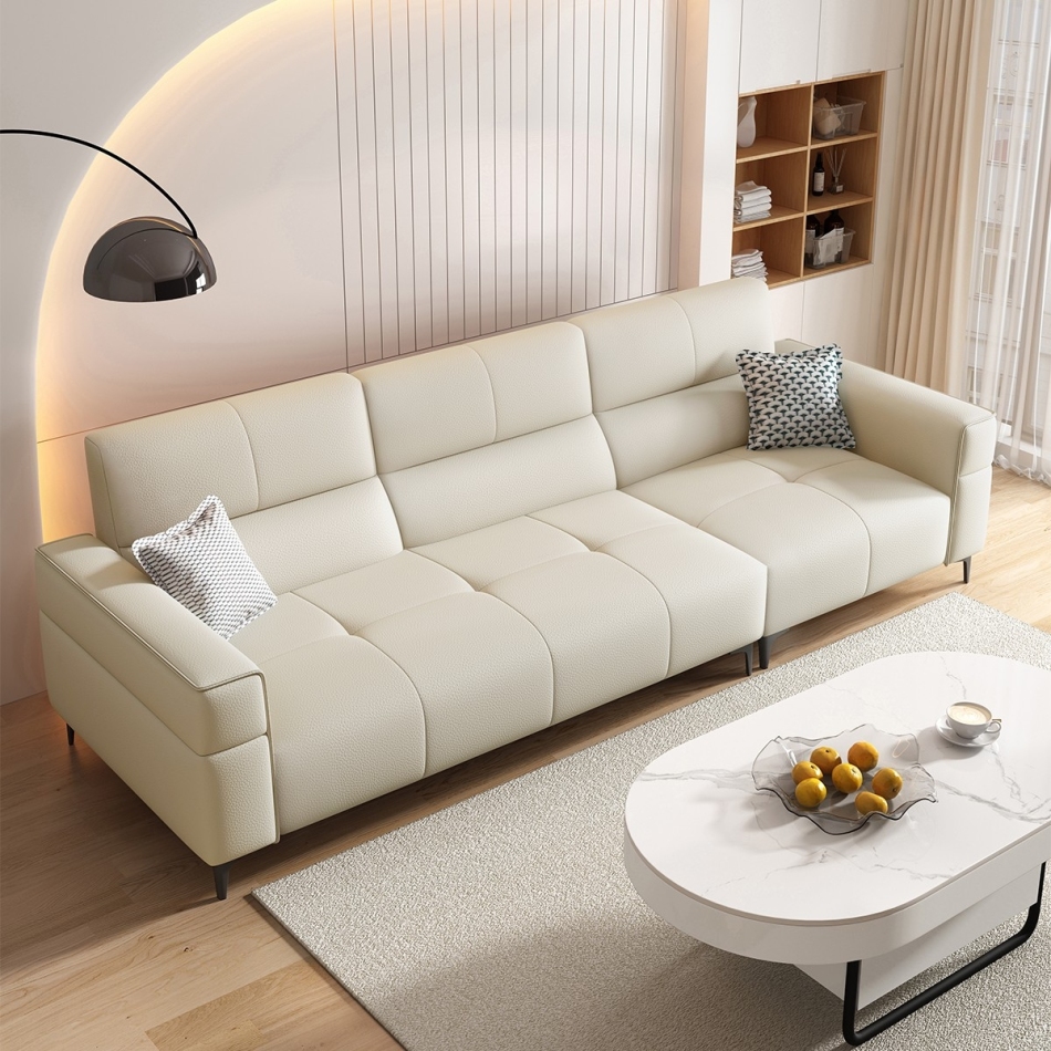 意式极简家用客厅荔枝纹头层黄牛皮软包直排组合沙发