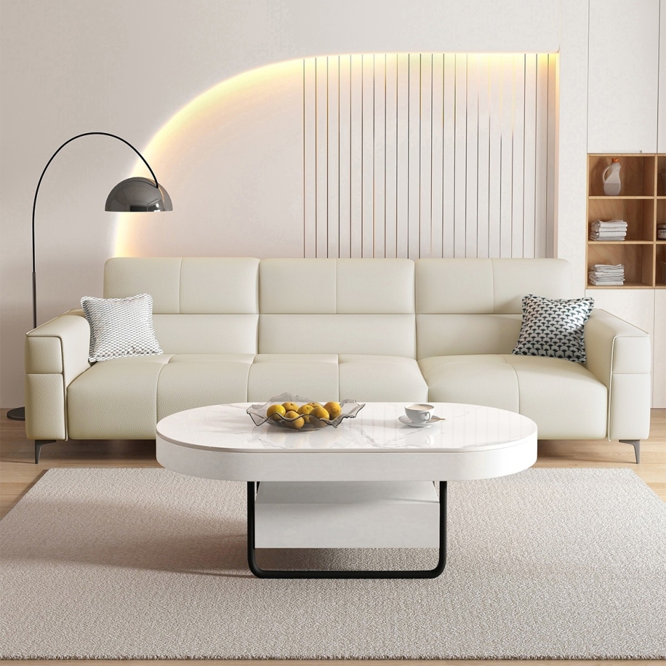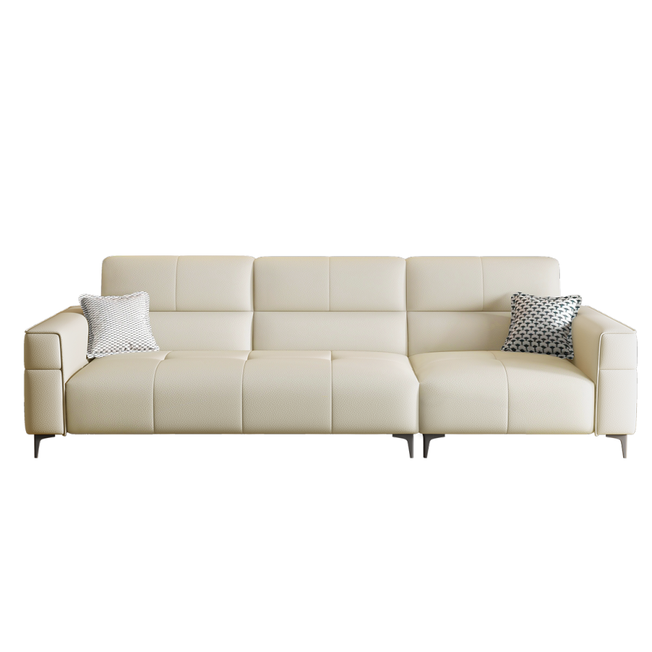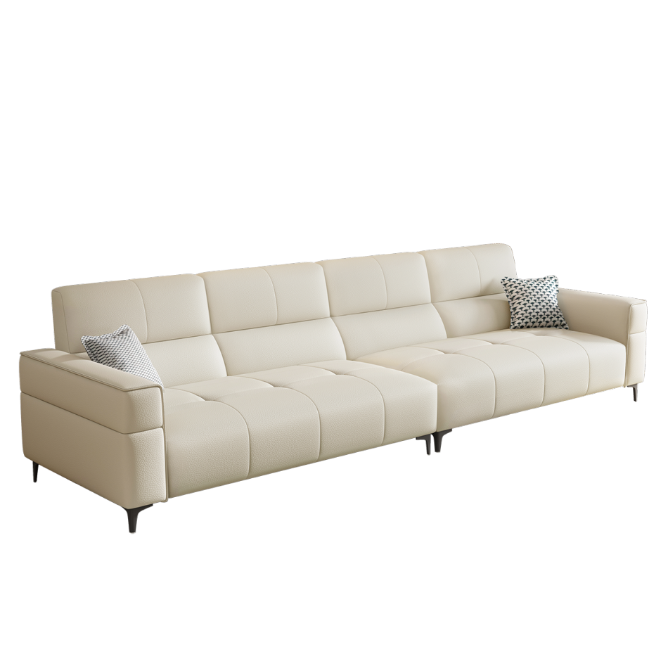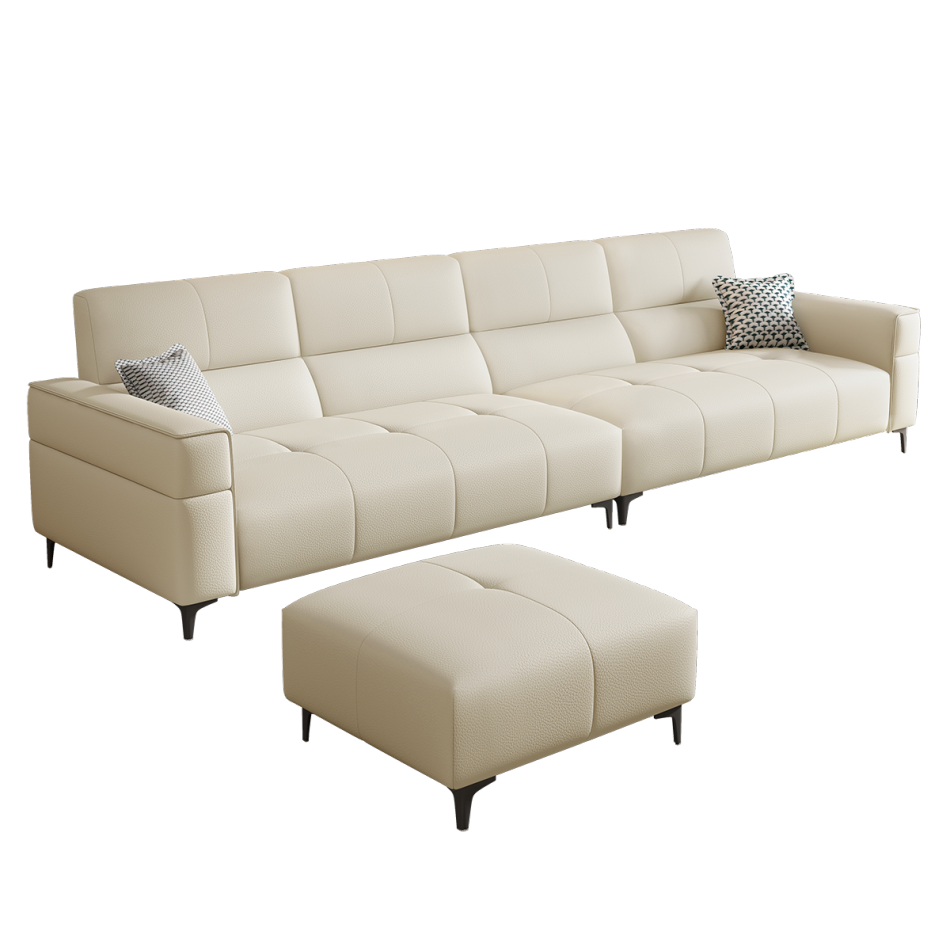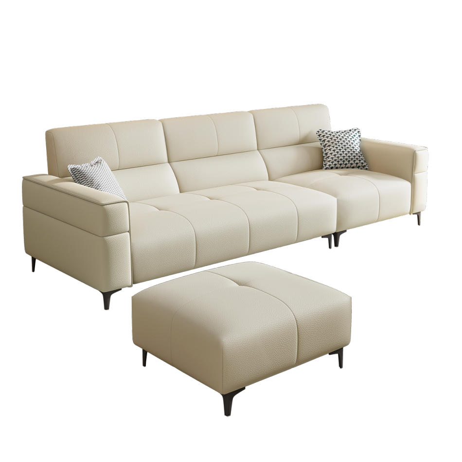 意式极简家用客厅荔枝纹头层黄牛皮软包直排组合沙发