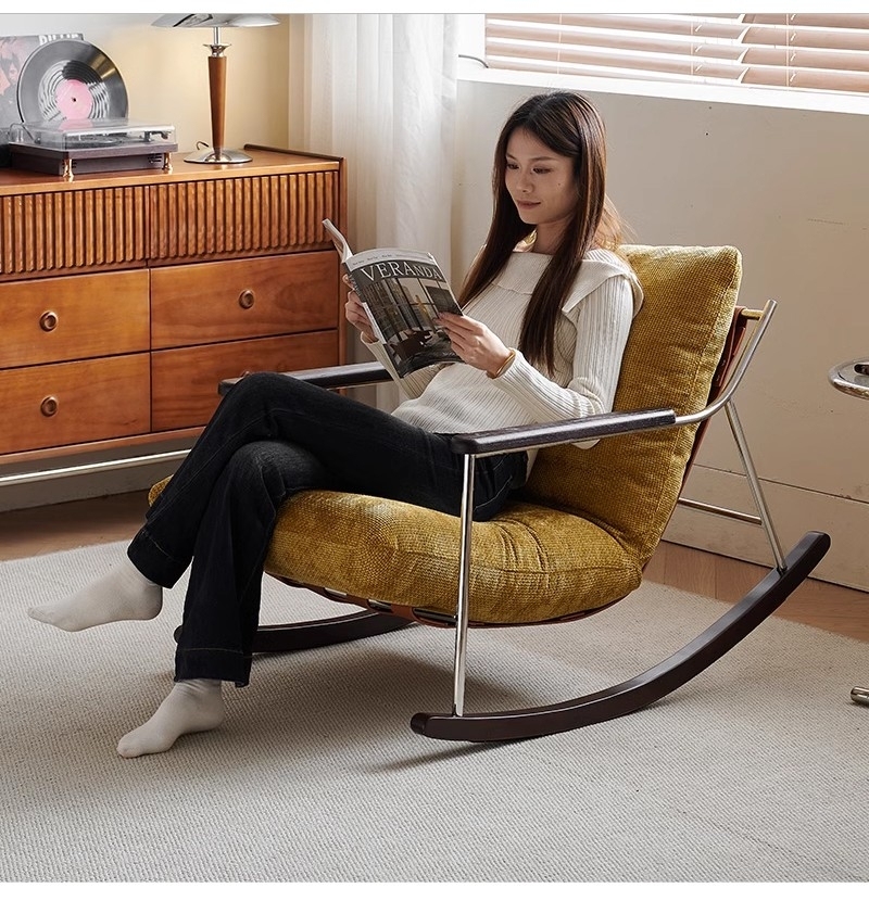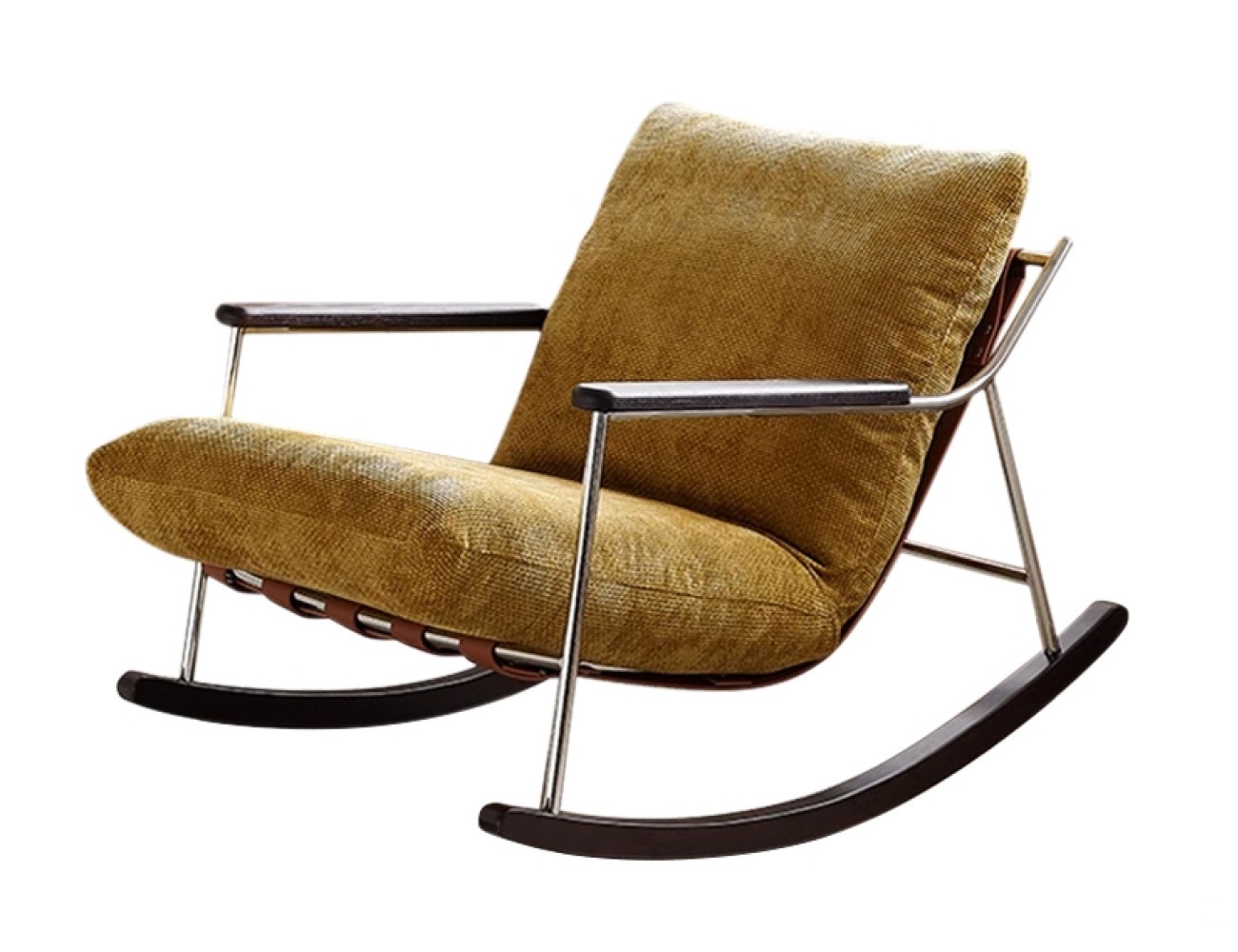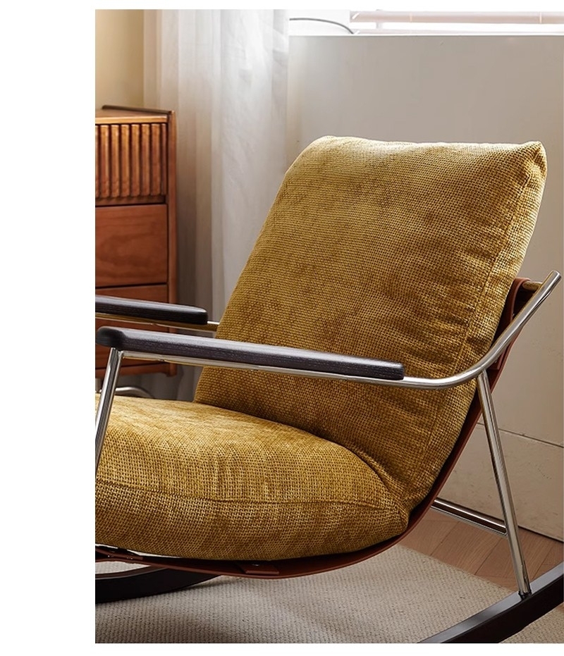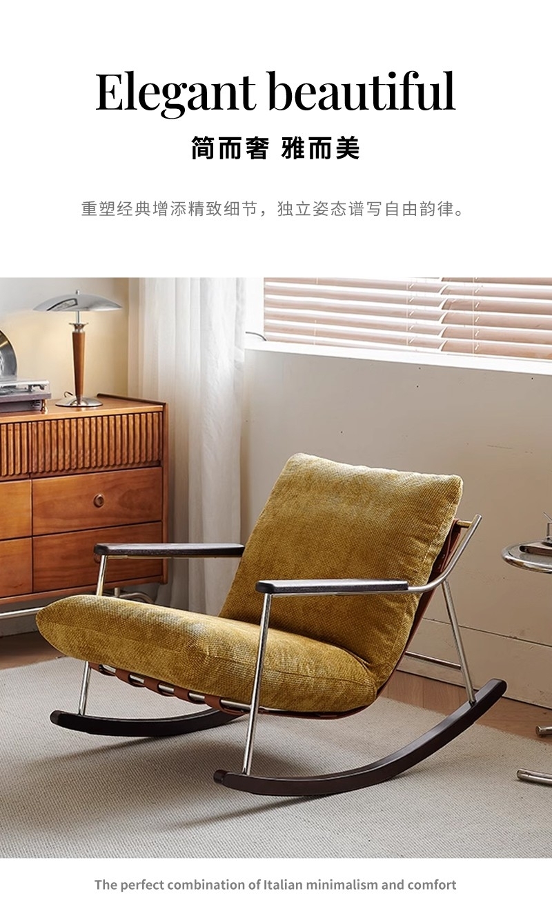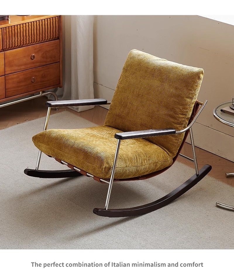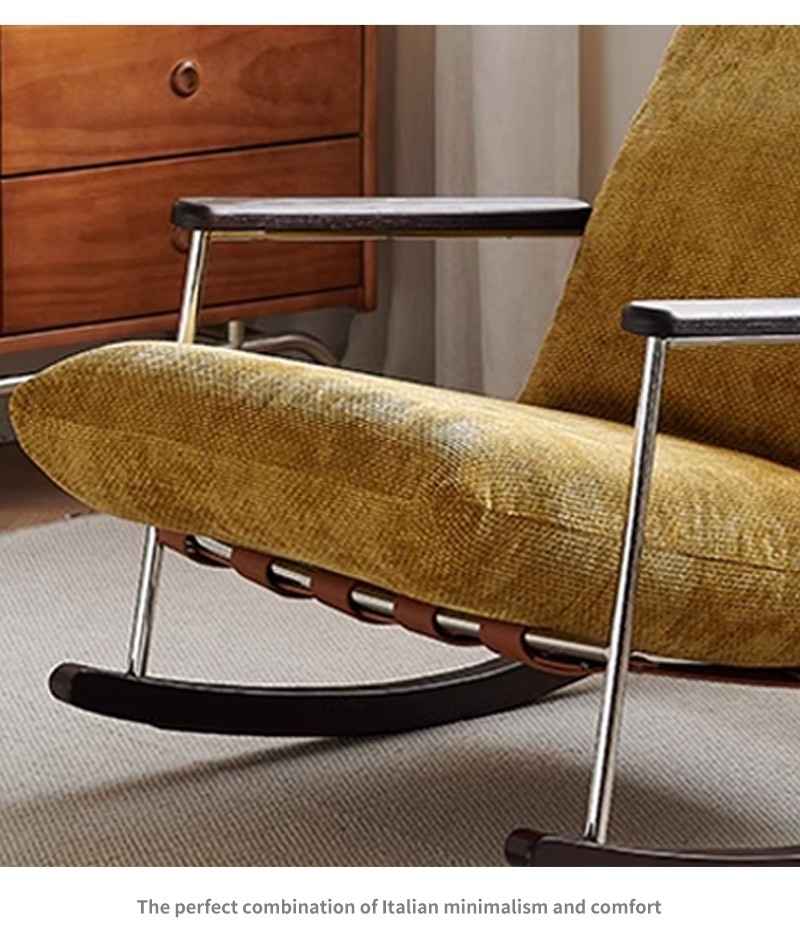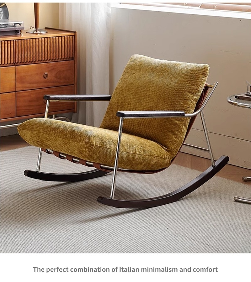 意式极简家用棉麻布艺软包单人椅客厅阳台摇摇椅休闲椅