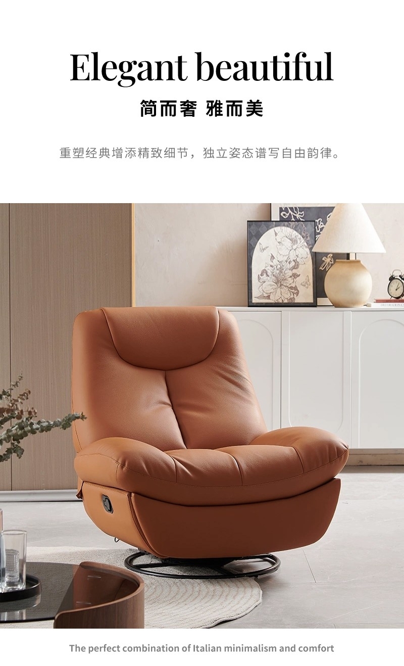 意式极简风家用客厅卧室多功能手动沙发椅休闲椅躺椅