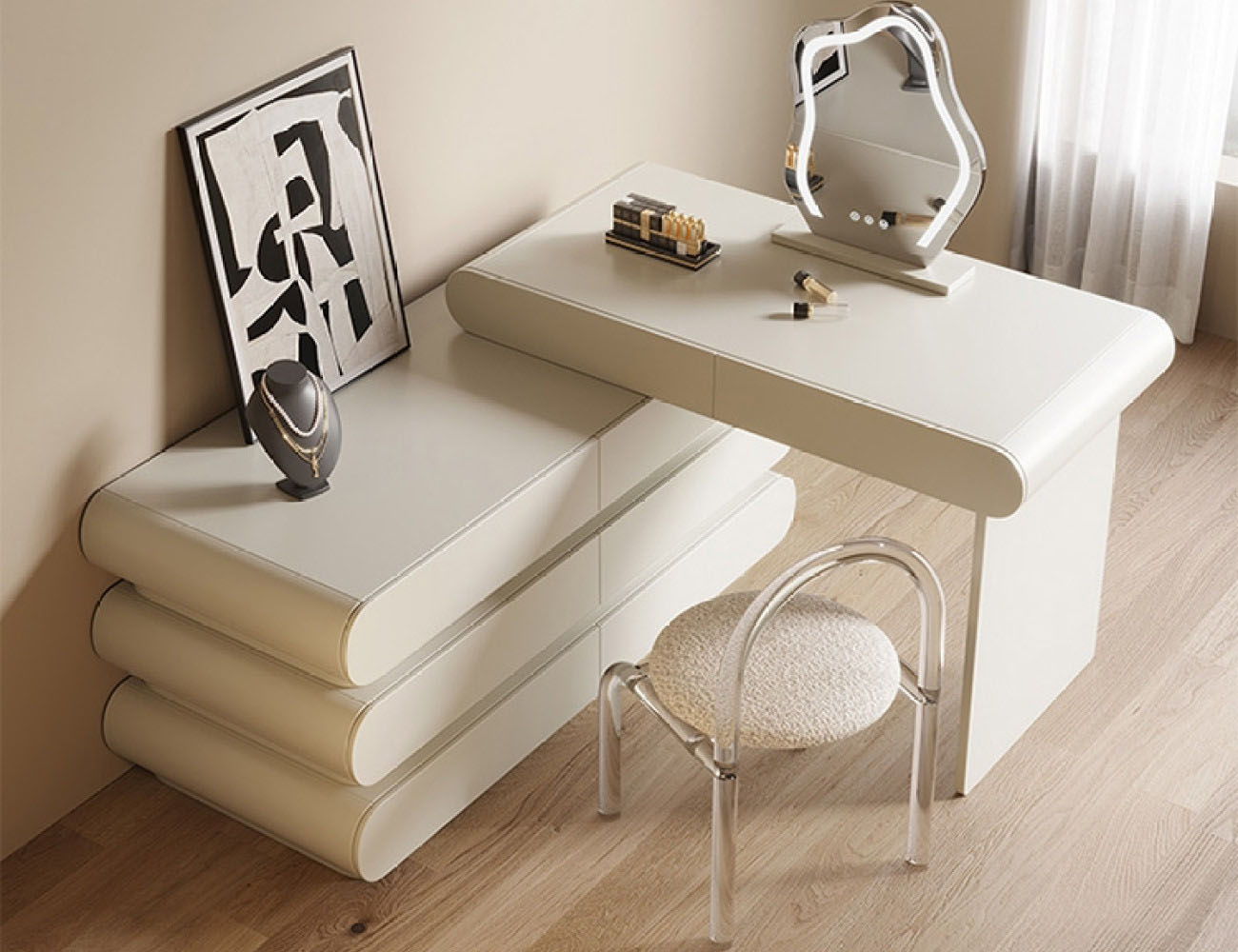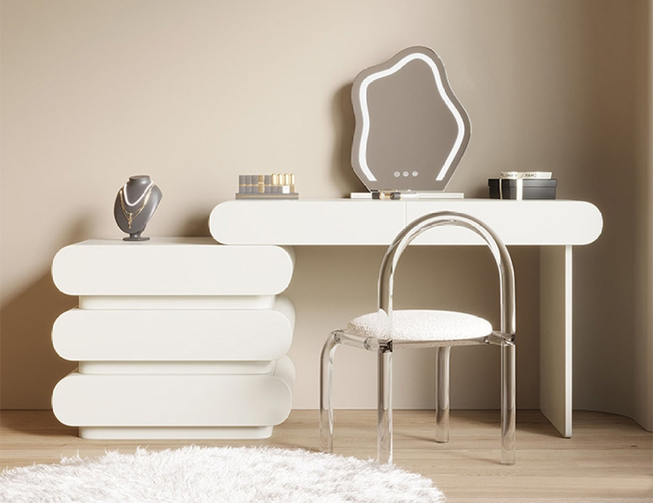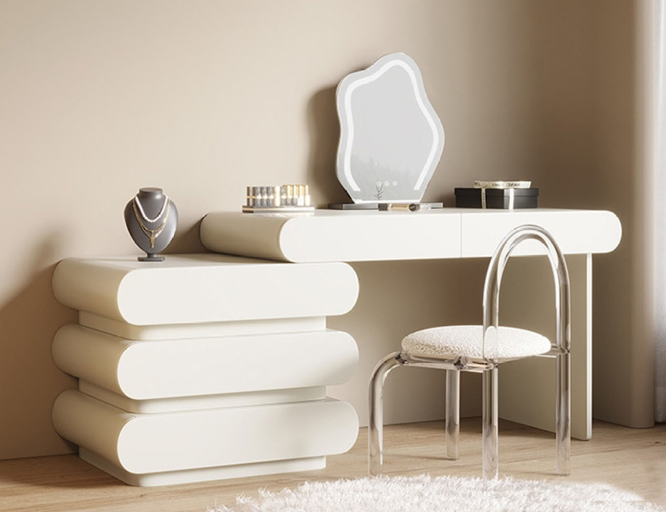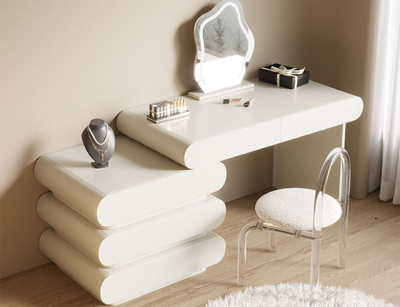 产品包含:妆台+边柜+镜子+妆凳*1