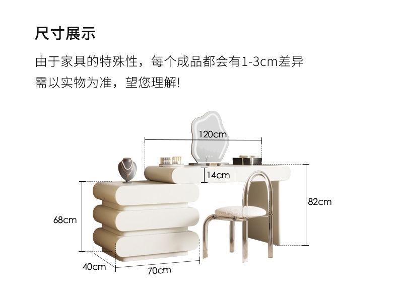 产品尺寸:妆台:长1200*宽400*高820mm;