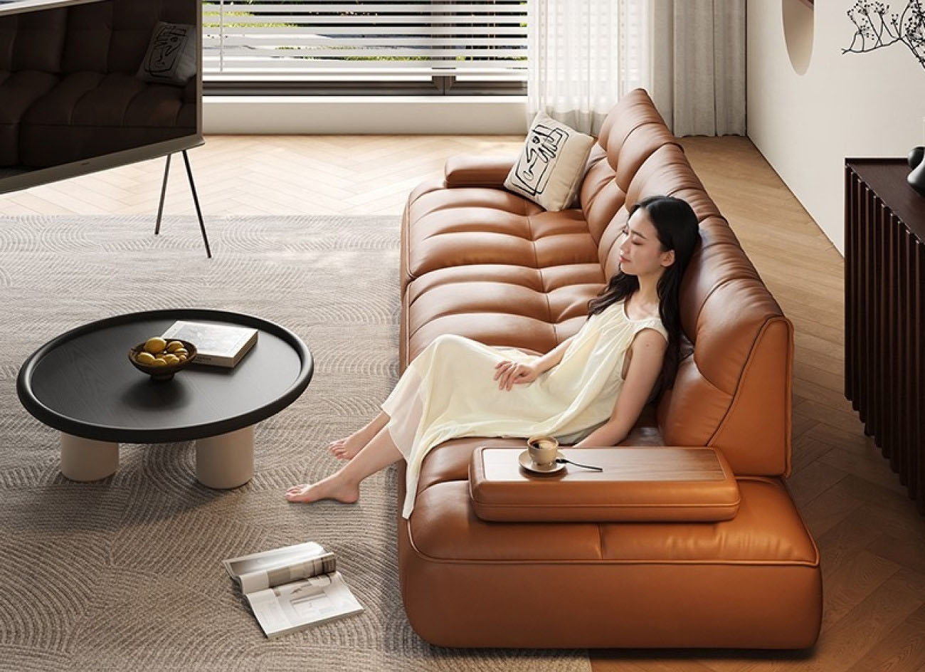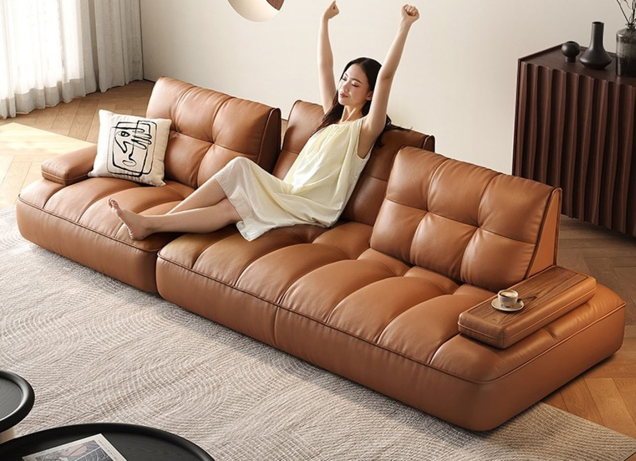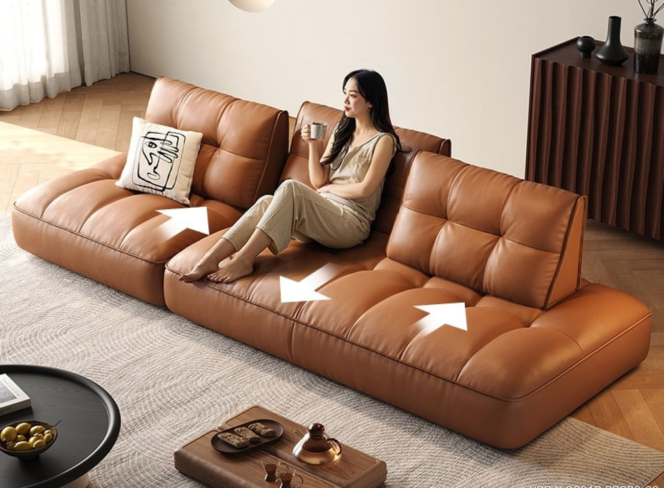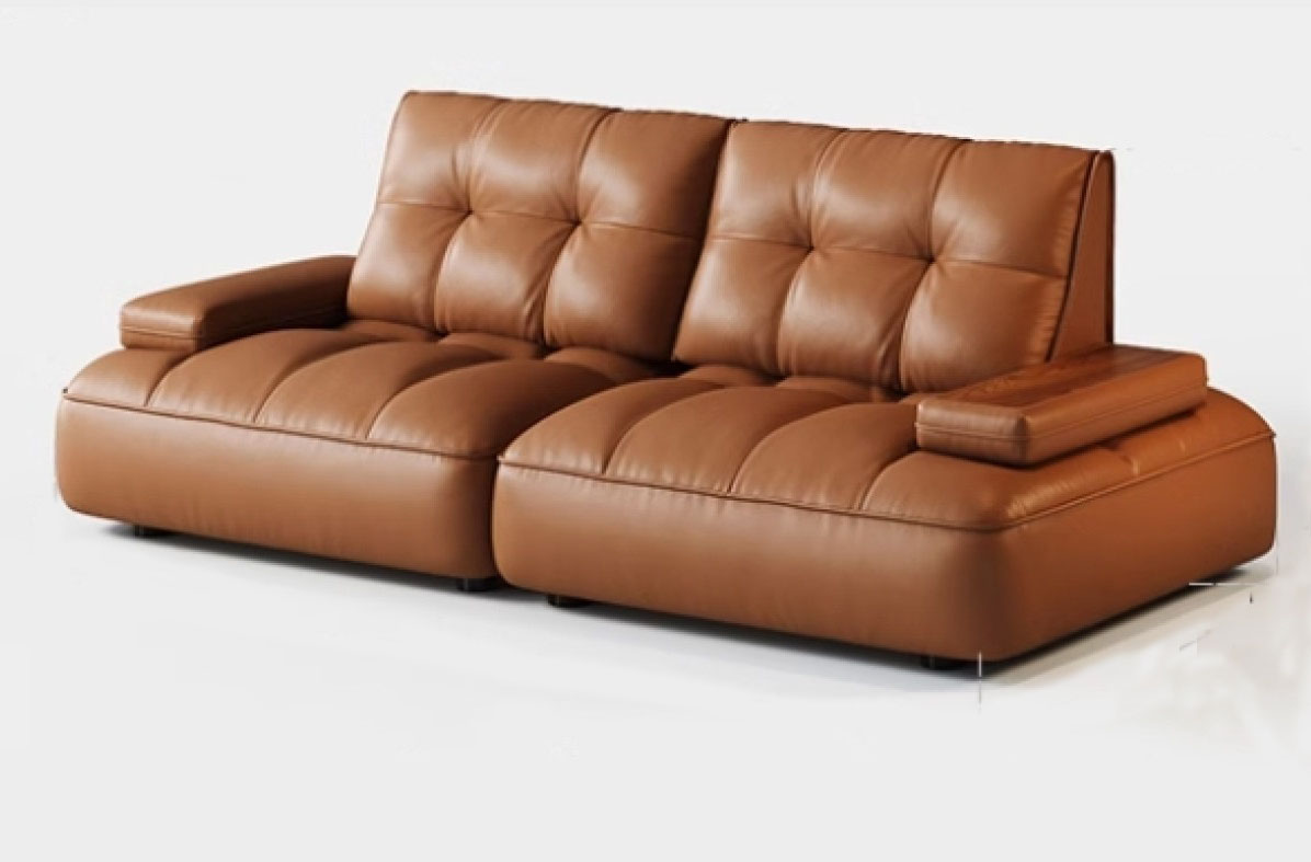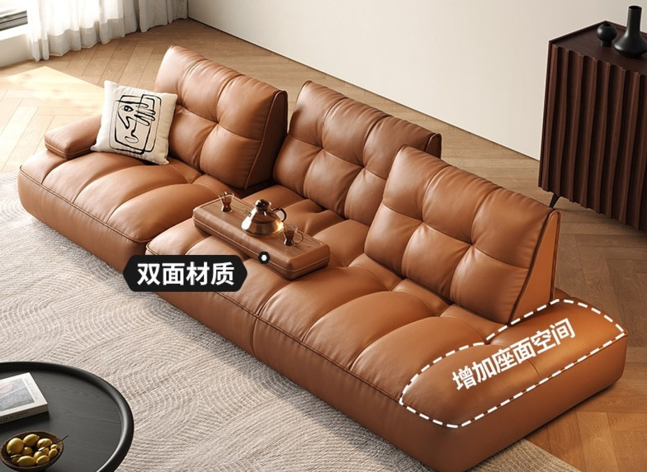 意式极简风荔枝纹头层牛皮沙发 简约客厅可调节活动靠背沙发
