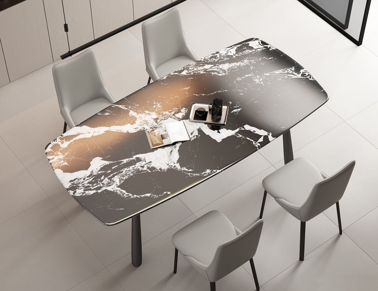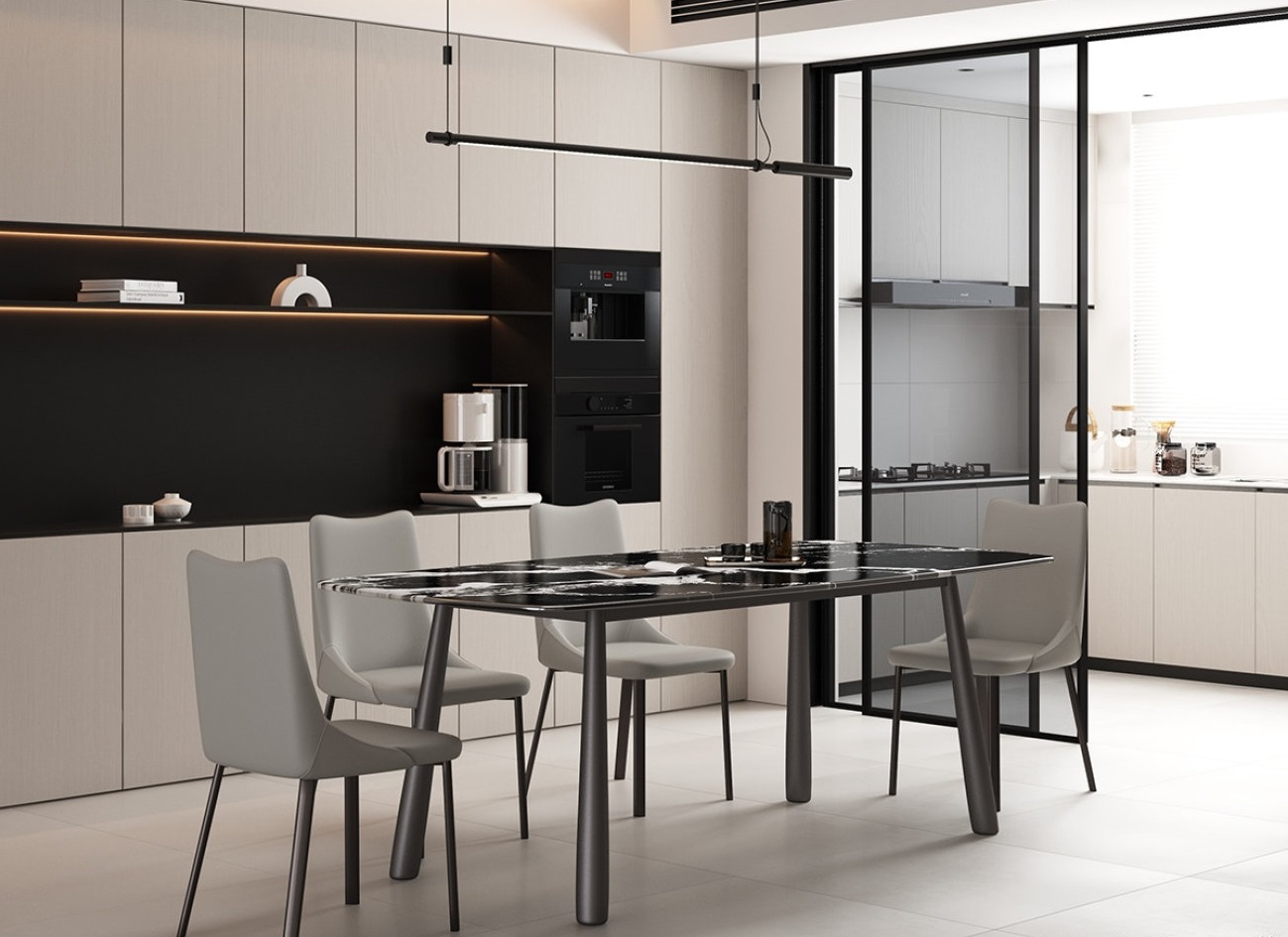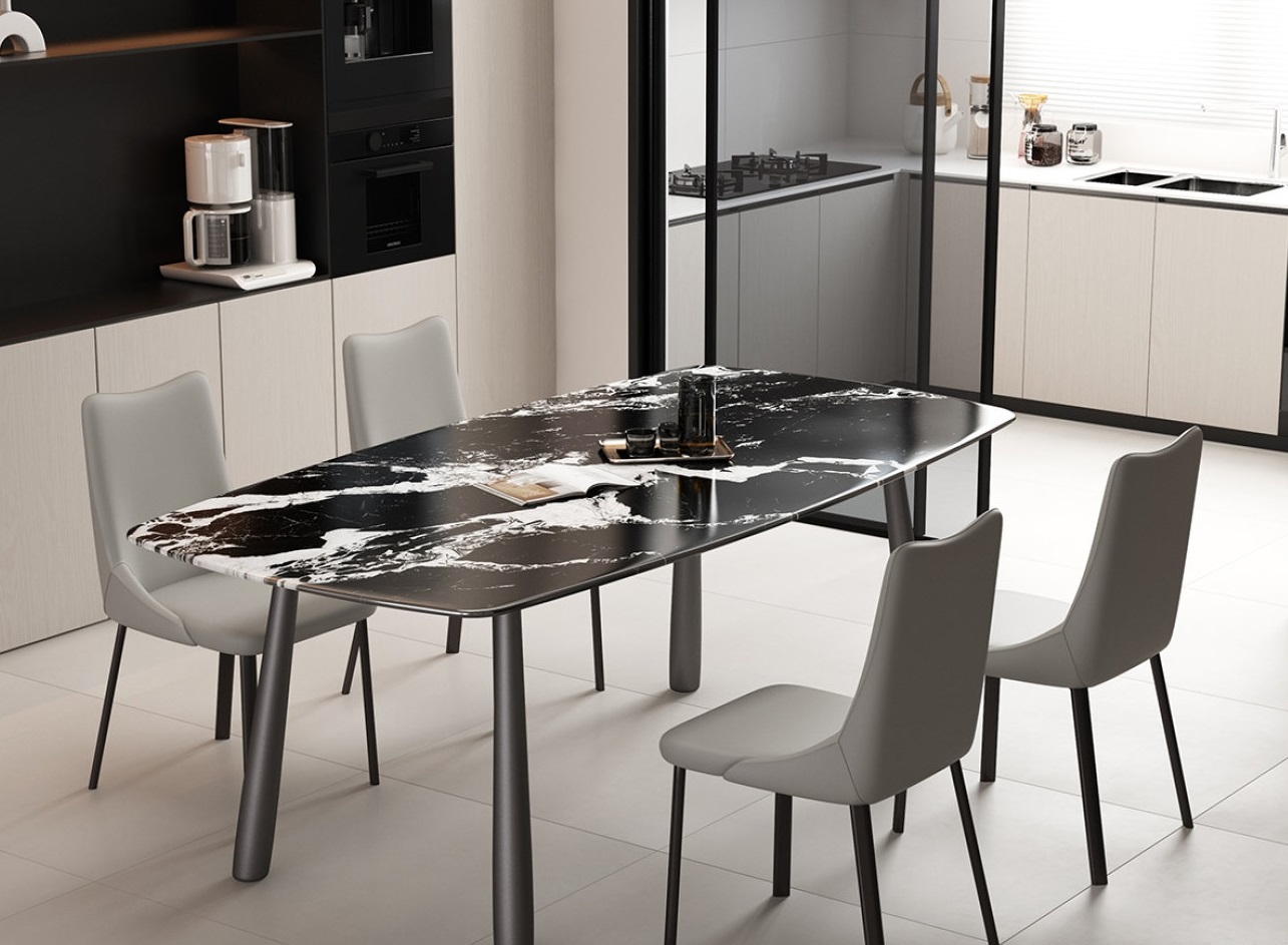 意式极简风长方形餐台 餐厅时尚宝格丽黑超晶石餐桌