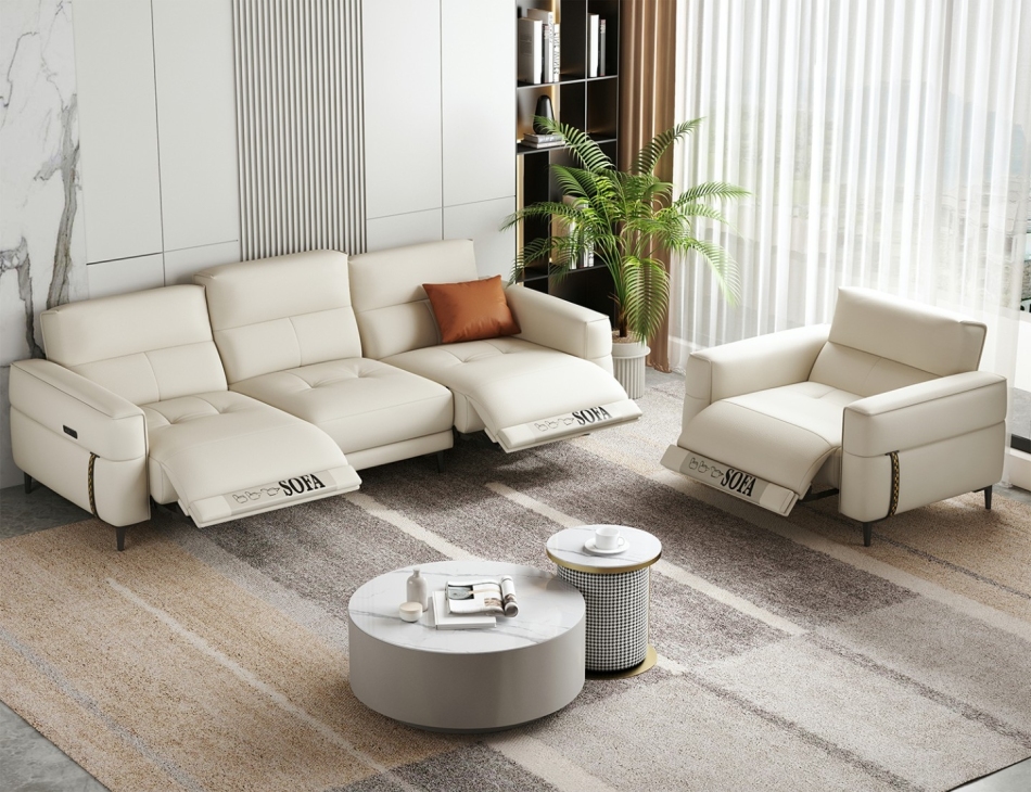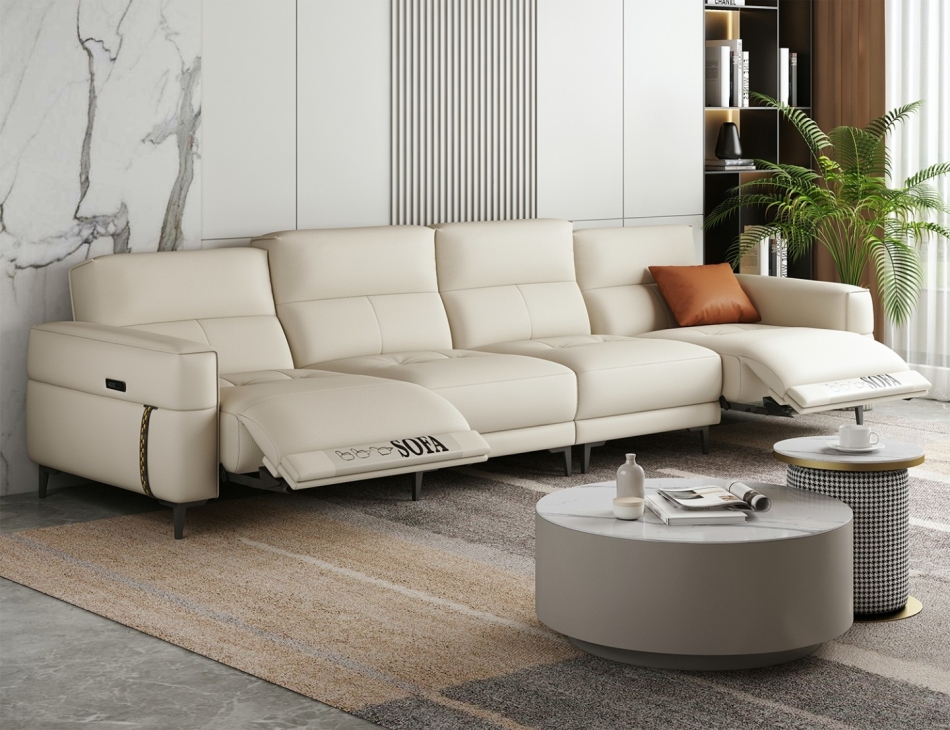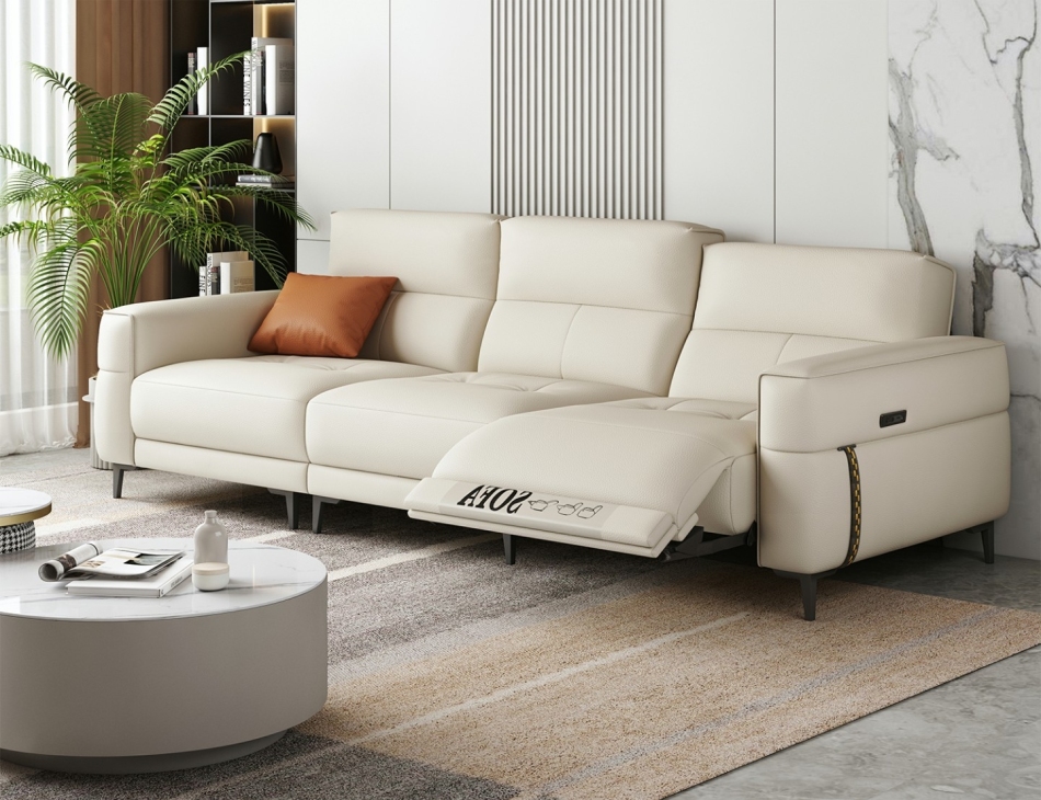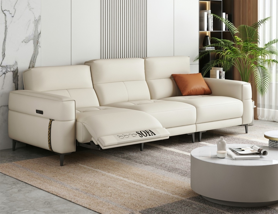 意式极简风零靠墙电动功能抬脚沙发客厅头层牛皮荔枝纹组合沙发